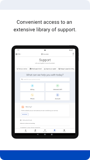 The My CenturyLink app brings management of your account and services into one easy place. You can use the app to: • Connect your new service quickly with modem self-install. • View and manage your bill payment with convenience and ease. • Check your services, upgrade your Internet speed (if available in your area). • Manage your settings. • Visit Support to troubleshoot or optimize your service through self-help tools and videos. • Get personalized alerts, so you can see the status of your order, or find out if there is an interruption to your Internet service. • Plus, so much more. Additional features for our Secure WiFi customers (Secure WiFi is available on compatible modems leased from CenturyLink): • Parental controls to guard against inappropriate web content. • Pause and resume internet access of devices on our WiFi. • Schedule online and offline times for devices and users. Learn more about Secure WiFi by visiting https://centurylink.com/home/help/internet/secure-wifi We\re here to help! You can get in touch via http://www.centurylink.com/contact
