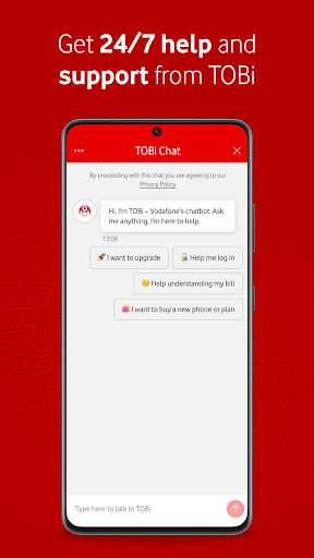 Keep track of your Vodafone account on the go with the My Vodafone app. Track your usage, view and pay bills. With My Vodafone you can also upgrade your phone, change your plan, and get weekly treats and give-aways with VeryMe rewards. You can also: • Get help from TOBi, our friendly virtual agent • Top up and claim rewards • Add extras and manage your bars • Check your network and Wi-Fi speed • Manage all your Vodafone services in one place Things to remember: • You must be on a device with your Vodafone UK SIM card to use the app • The first time you use the app, you’ll need to be connected to our mobile network (not Wi-Fi) to register your device. Just to note, if you don’t have an inclusive data allowance this will be charged at your standard rate • The My Vodafone app is free, but any data you use to access VeryMe Rewards or other functions will be taken from your monthly allowance or credit • If you’re new to Vodafone or have recently upgraded, your account information won’t be available until after your first bill • The My Vodafone app is being rolled out to sole trader and small business customers. We’ll contact you when you can use it for your business • For more help with the app visit www.vodafone.co.uk/app • Having app issues? Email MyVodafoneApp@vodafone.co.uk