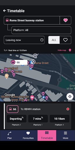 The official MyTranslink app is the perfect Queensland travel companion. Travellers and commuters can intuitively plan with real-time public transport information whether travelling by bus, train, ferry or tram. - Our app also makes it easier to personalise travel information and favourite frequently used stops. Other app features and benefits includes: - Easily find nearby stops for all public transport via the home screen - Plan trips in real-time by seeing the next service departing from your stop - Updated Timetable - Clearly see the frequency of services (in real-time) via the timetable - Trip Announcer - Get real-time stop alerts throughout trips (while en route) - Stop Alerts - Receive notifications when you are close to your destination - Save your favourite stops to be alerted of any travel updates - Light and dark theme options For more information, please visit translink.com.au/myTranslink. For the MyTranslink app privacy policy, please visit https://translink.com.au/plan-your-journey/mytranslink/conditions-of-use#privacy For the MyTranslink app conditions of use, please visit translink.com.au/myTranslink/conditions-of-use. Note: prolonged use of GPS features can affect phone battery life and data usage.