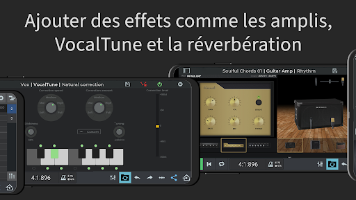 n-Track Studio est une application de création musicale puissante et portable qui transforme votre appareil Android en un studio d\enregistrement et un Beat Maker complet. Enregistrez un nombre pratiquement illimité de pistes audio, MIDI et de batterie, mixez-les pendant la lecture et ajoutez des effets : des amplis de guitare, à la mélodie vocale et à la réverbération. Éditez des chansons, partagez-les en ligne et rejoignez la communauté Songtree pour collaborer avec d\autres artistes. Consultez les tutoriels du studio n-Track pour Android : https://ntrack.com/video-tutorials/android COMMENT ÇA MARCHE : - Enregistrer une piste avec le micro intégré ou une interface audio externe - Ajoutez et modifiez des pistes audio à l\aide de notre navigateur de boucle et de packs d\échantillons libres de droits - Importer des sillons et créer des rythmes en utilisant notre Step Sequencer Beat Maker - Créez des mélodies en utilisant le clavier interne avec nos instruments virtuels intégrés. Vous pouvez également connecter des claviers externes - Utilisez le mixeur pour ajuster les niveaux, le panoramique, l\égalisation et ajouter des effets - Enregistrez ou partagez l\enregistrement directement à partir de votre appareil PRINCIPALES CARACTÉRISTIQUES : - Pistes audio stéréo et mono - Séquenceur d\étapes Beat Maker - Pistes MIDI avec Synths intégrés - Navigateur en boucle et exemples d\applications - Nombre de pistes pratiquement illimité - Groupe et chaînes auxiliaires - Editeur MIDI pour piano à queue - Clavier MIDI à l\écran - EQ avec analyseur de spectre 2D & 3D + tuner chromatique • VocalTune - correction de la hauteur : corriger automatiquement toute imperfection de hauteur sur les voix ou les parties mélodiques - Plugins pour guitare et basse - Réverbération, écho, chœur et flanger, trémolo, pitch shift, phaser, ampli à lampe et effets de compression peuvent être ajoutés à n\importe quelle piste et au canal principal. - Métronome intégré - Importer des pistes existantes - Automatisez le suivi des volumes et des panoramiques en utilisant les enveloppes de volume et de panoramique - Partagez vos enregistrements en ligne - Collaborer à la création de musique avec d\autres musiciens grâce à la communauté intégrée de création musicale en ligne Songtree DES FONCTIONNALITÉS AVANCÉES : - Moteur audio 64 bits à double précision en virgule flottante. - Suivez le menu déroulant Tempo & Pitch Shift de la chanson sur les boucles audio - Exporter des fichiers audio de 16, 24 ou 32 bits - Régler la fréquence d\échantillonnage jusqu\à 192 kHz (les fréquences supérieures à 48 kHz nécessitent un dispositif audio externe) - Synchronisation avec d\autres applications ou appareils externes utilisant l\horloge MIDI et la synchronisation MTC, maître et esclave - Enregistrez plus de 4 pistes simultanément à partir d\appareils pro audio USB tels que RME Babyface, Fireface et Focusrite. - Prise en charge de la sortie audio multiple lors de l\utilisation de périphériques USB compatibles. Ce que vous obtenez : - Nombre illimité de pistes audio et MIDI - Déverrouille tous les effets disponibles - Nombre illimité d\effets par chaîne - Exportation vers WAV ou MP3 - Moteur audio 64 bits - Interfaces audio multicanaux USB compatibles avec la classe de protection - Exportation en format 24, 32 et 64 bits non compressé (WAV) (l\édition standard est limitée à 16 bits WAV) - Vue 3D du spectre des fréquences Directement dans les achats d\applications disponibles : - 10 Go et plus de boucles WAV libres de droits et de one-shot - Projets exclusifs Beats & n-Track Studio éditables - Plus de 400 exemples d\instruments