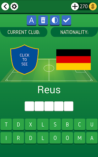 This game is for football fans. The concept is simple: you have the surname and nationality of each football player and you must guess his first name. If you guess correctly you will get coins in reward. You can use 5 kinds of help. Do you know much about footballers? Do you like quizzes and trivia? Prove your ability with this game. Features: ★ 600 football players ★ 15 exciting levels ★ 50 coins ★ each correct answer = + 5 coins ★ coins are awarded to help you figure out the answer ★ 5 kinds of help: - display the logo of current football club - show the first letter - remove unnecessary letters - show half of the answer - show the full answer ★ swipe screen to switch between questions ★ learn more about players after correctly guessing (profile): - Transfermarkt - Instagram - Wikipedia - Twitter - Facebook ★ detailed statistics ★ cool and clear design ★ small application size ★ the game is absolutely free ★ frequent application updates Who is your favourite football player? Cristiano Ronaldo, Lionel Messi, Paul Pogba, Luis Suarez, Robert Lewandowski, Marco Reus, Zlatan Ibrahimović, Gareth Bale, Toni Kross, Gerard Pique, Wayne Rooney, Eden Hazard, Harry Kane, Paulo Dybala? You will find them all in this app. Play our quiz and guess everyone. Test your knowledge. Good Luck :) DISCLAIMER: All logos shown or represented in this game are protected by copyright and/or are trademark of their respective owners. The use of low-resolution images in this application for the use of logo identification qualifies as \fair use\ under copyright law in the USA.