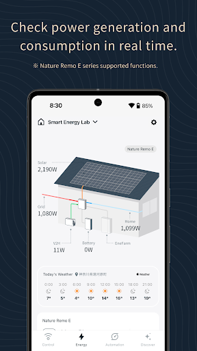 The Nature Home app is an app that connects with both the smart remote control, Nature Remo, and smartphone HEMS, Nature Remo E, each part of their respective series. With this app, you can seamlessly control infrared appliances and energy management devices throughout your room.
