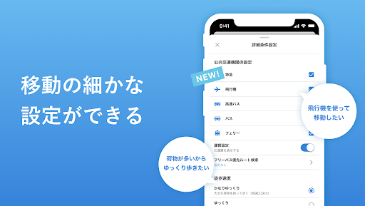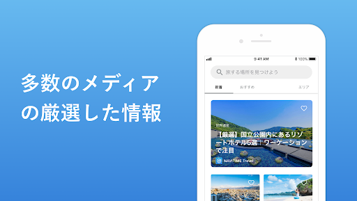 身近なおでかけ情報収集や旅行計画表の作成までを簡単に行うことができるおでかけサポートアプリです。 たくさんの観光ガイドやモデルコースも用意しているので、旅行に行きたいけどどこに行くか決められない人におすすめ! 40以上の連携メディアから厳選したおでかけ情報を毎日お届けします。 行きたい場所を登録すると、自動的にルートや時間、料金を検索して簡単に旅行スケジュールを作成することができます。 航空券・新幹線・ホテル・レンタカー・シェアサイクル・アクティビティまで様々な予約もこのサービス一つでできます。 おでかけ前の計画だけでなく、おでかけ中に近くのカフェを探すなど様々なシーンでご利用いただけます。 =============== アプリの特徴 =============== ●おでかけ情報 毎日配信されるたくさんの記事を見て、おでかけ先を見つけてみましょう。 記事はフリーワード・エリア・ジャンル・メディアで絞り込むこともできます。 気に入った記事やスポットが見つかったら、お気に入りしてリストにどんどん追加しましょう。 記事で紹介しているスポットは地図で見ることもできるので、実際に行く前に位置を確認する事ができます。 ●旅行プラン作成 行きたい場所が決まったら、旅行プランを作ってスケジュールにスポットを追加していきましょう。NAVITIME Travelが自動で移動ルート、時間、料金を計算して、あなたに最適な旅行プランを組み立てます。スポットの滞在時間や到着時刻は自由に編集でき、変更に合わせてスケジュールが更新されます。スポットにメモを付けることも可能です。 ●各種予約(航空券・新幹線・ホテル・レンタカー・シェアサイクル・アクティビティ) 航空券 - 国内の移動でよく利用する主要空港を考慮して検索できます。 - 東京(羽田)、東京(成田)、大阪(伊丹)、大阪(関西)、札幌(千歳)、名古屋(中部)、福岡、沖縄(那覇) 新幹線 - 新幹線・特急列車の予約ができます。 ホテル - 今晩泊まれる宿を検索することもできます。 レンタカー - 主要なレンタカー会社を比較して探すことができます。 アクティビティ - キーワード・ジャンル・エリアから探すことができます。 シェアサイクル - 現在地近くのポートを探して、簡単に予約することができます。 ●スポット検索 日本全国のスポットを、スポット名や電話番号で検索できます。観光地はもちろん、ホテル、アクティビティ、お花見などの季節スポットも検索でき、現地の写真や詳細情報を見ることができます。ホテル、アクティビティ、グルメスポットは、予約やクーポンにも対応しています。 気になった場所はお気に入りに保存して旅行プランへの追加も可能です。 ●観光モデルコース ナビタイム編集部が作ったモデルコースを多数掲載しています。エリア別での表示やフリーワード検索に対応。気になったモデルコースは、お気に入りに保存できます。モデルコースから旅行プランを作成することもできます。 ●Webサイトとの同期 作成した旅行プラン、お気に入りスポット、お気に入り記事、お気に入りモデルコースは、Webサイトとでも閲覧、編集が可能です。 ●プレミアムコース機能 プラン共同編集 - ご友人やご家族など、複数人で1つの旅行プランを同時に編集することができます。1人の入会で最大10人まで利用可能です。 複数経路確認 - 旅行プラン内の移動ルートを複数パターン検索し、細かいニーズに合わせたルートを選択して旅行プランを作成できるようになります。 お気に入り上限解放 - 記事、スポット、モデルコースをそれぞれ200件までお気に入り登録できるようになります ※初回に限り『7日間無料』でお試しできます!