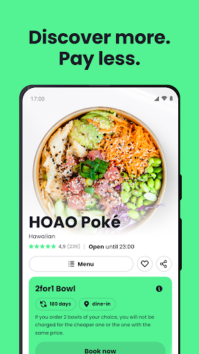 Try out and discover restaurants with cool deals! Craving pizza, salad, burgers, sushi, pasta or something else? ️️️ ️ Discover restaurants Honestly, how many restaurants have you tried in your city? We show you the newest and hottest spots. Cool Deals Our partner restaurants invite you: 2 for 1 main course, dessert with the main course on the house or other cool deals! Always there You always have all the deals in your pocket. Take a look at which restaurants are in your area and invite you. Useable in all cities You can use NeoTaste in all cities where we have partner restaurants. And more cities and restaurants are constantly being added. ️ Discover all partner restaurants in the app!