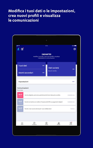 Nexi Business è l’App di Nexi dedicata agli esercenti, che consente, in qualsiasi momento e ovunque tu sia, di gestire e monitorare la tua attività. Attraverso l’app, completamente gratuita, potrai: MONITORARE E GESTIRE LE TUE TRANSAZIONI • Consulta in ogni momento il dettaglio delle transazioni effettuate (con POS in negozio o online con e-commerce) • Visualizza i dati aggregati o per singolo punto vendita • Cerca le transazioni per numero della carta o per codice di autorizzazione oppure filtrale per periodo, importo e circuito • Gestisci gli storni in totale autonomia INCASSARE PAGAMENTI • Richiedi ed incassa pagamenti a distanza dai tuoi clienti tramite servizi digitali come Pay-by-Link • Tieni traccia dei pagamenti incassati e di quelli ancora in attesa di pagamento grazie allo storico dei link da te generati ANALIZZARE LE PERFORMANCE DEL TUO BUSINESS • Consulta i tuoi incassi del giorno, della settimana e del mese • Confronta i tuoi risultati su periodi di tempo diversi • Compara, su un periodo di tempo specifico, l’andamento della tua attività rispetto alla media del tuo settore CONSULTARE E SCARICARE I TUOI DOCUMENTI • Accedi ai tuoi documenti contabili relativi alle transazioni digitali accettate (fatture, estratti conto) e ai documenti fiscali (riepilogo per credito di imposta) • Visualizzali online o scaricali sul tuo dispositivo GESTIRE IL TUO PROFILO E LE UTENZE • Modifica i tuoi dati e visualizza quelli della tua società • Crea utenze secondarie per i tuoi dipendenti e semplifica la gestione della tua attività • Rimani aggiornato con le ultime comunicazioni RICEVERE SUPPORTO • Scopri le potenzialità dell’app tramite i tutorial contestuali alle funzionalità • Richiedi assistenza online per risolvere i problemi ACCEDERE A SERVIZI E OFFERTE DEDICATE • Ottimizza il tuo business grazie alle offerte e ai sevizi pensati da Nexi per te sulla base delle tue esigenze Scarica l\App, registrati online e accedi subito a tutte le funzionalità di Nexi Business. Per registrarti devi avere a portata di mano uno tra: codice IBAN, codice Linea Diretta o matricola POS. L’ Accessibilità: Noi del gruppo Nexi lavoriamo costantemente per rendere le comunicazioni, i contenuti e le risorse online accessibili a ogni utente. Il nostro impegno a migliorare questo sito e tutte le nostre property digitali secondo le linee guida e le pratiche principali di accessibilità è continuativo, in modo da rendere disponibili i nostri servizi erogati via web al maggior numero possibile di utenti. Con l’obiettivo di rendere i nostri prodotti digitali accessibili a tutta la nostra clientela, abbiamo intrapreso un rigoroso processo di analisi e assessment degli stessi, in conformità con le linee guida WCAG 2.1 del World Wide Web Consortium (W3C). Si tratta di lungo percorso, che ci impegna quotidianamente, volto a individuare eventuali problematiche tecniche e di usabilità. Per questo motivo non siamo esenti da errori e alcune sezioni di questo sito e di altri nostri canali potrebbero essere in fase di aggiornamento. Se dovessi riscontrare qualsiasi tipo di problematica durante l’utilizzo dei nostri siti web e applicazioni mobile ti invitiamo a inviarci le tue segnalazioni. La nostra missione: Vogliamo far sì che tutta la nostra offerta digitale sia conforme ai requisiti di accessibilità richiesti dall’appendice A della norma UNI CEI EN 301549 così da ridurre qualsiasi tipo di diseguaglianza nella fruizione dei nostri servizi e prodotti digitali da parte della nostra clientela. Segnalazioni: Potete inviare eventuali segnalazioni al nostro Team di Accessibilità scrivendo a accessibility@nexigroup.com Dichiarazione di Accessibilità: per visualizzare la dichiarazione, copia e incolla questo link https://www.nexi.it/content/dam/nexi/accessibilita/dichiarazione-accessibilita-nexibusiness-app.pdf in una pagina web.