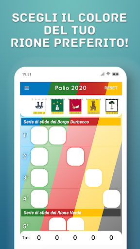 L\applicazione permette di segnare sul proprio telefono i punteggi dei vari rioni durante lo svolgimento del Palio e della Bigorda, consultare punti e tempi del Palio e Bigorda dell\anno precedente e vedere l\albo d\oro. Una guida introduttiva e l\interfaccia minimale, che ricorda il classico foglietto segnapunti, la rende facilmente utilizzabile da chiunque. Per ogni tornata è possibile, oltre che assegnare uno scudo ad uno dei due rioni sfidanti, anche segnare le tornate nulle o non disputate. E c\è di più, in caso di parità fra 2 o più rioni le caselle degli spareggi, vengono aggiunte in automatico! Alla termine del Palio o della Bigorda, ovvero al completamento di tutte le tornate, sarà possibile consultare la classifica finale, creata sulla base dei dati inseriti.