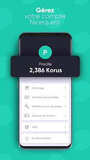 L\application Nicequest est exclusive pour nos membres. En tant que membre, vous pouvez accéder aux sondages en attente, participer à des activités et gagner des cadeaux à tout moment, où que vous soyez. Participez à des sondages et Activités spéciales - Recevez des notifications à l\instant chaque fois qu\un nouveau sondage ou activité vous est proposée. Échangez vos points Korus - Choisissez votre cadeau, faites un don de vos Korus ou échangez-les contre des tirages mensuels. - Filtrer les cadeaux par catégorie ou par quantité de Korus. Gérez votre compte - Modifiez vos données personnelles. - Accédez à votre historique pour voir toutes vos activités et vos commandes. *Certaines activités de l\application nécessitent l\utilisation de services d\arrière-plan et / ou d\accessibilité pouvant diminuer l\autonomie de la batterie de votre appareil. Cette application utilise des services d\Accessibilité - Cette application demande des services d\Accessibilité uniquement à un groupe de collaborateurs qui ont explicitement accepté de participer à des projets d\étude de marché spécifiques impliquant une activité Web. En acceptant explicitement de participer à ces projets, les collaborateurs acceptent de partager leur activité sur le Web et les applications avec nous à des fins d\études de marché. À aucun moment, aucune information personnelle n\est partagée avec des partenaires tiers.