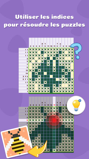 Nonogram est un jeu de logique où vous devez résoudre des énigmes numériques en remplissant ou en laissant des cases vides selon des indices numériques autour de la grille, pour révéler une image pixelisée cachée. Ce jeu, également connu sous le nom de Hanjie, Picross, Griddlers, mots croisés japonais ou Peindre par numéros, est un excellent moyen d’entraîner votre cerveau et de garder l\esprit actif en appliquant des règles simples et logiques. Nonogram est un puzzle de type sudoku visuel où vous devez remplir ou laisser vide les cases en suivant les indications numériques. Les chiffres au-dessus des colonnes se lisent de haut en bas, tandis que ceux à gauche des lignes se lisent de gauche à droite. Selon les nombres, coloriez une case ou marquez-la d\un X. Chaque puzzle résolu vous permet de gagner un morceau de puzzle à assembler. Le jeu propose plus de 9 000 images magnifiques à découvrir, avec différents thèmes. C\est le premier jeu de nonogramme où vous pouvez résoudre un puzzle tout en jouant au puzzle de type jigsaw ! Non seulement vous pouvez jouer aux nonogrammes, mais aussi à des puzzles uniques. À chaque niveau passé, vous gagnez une pièce de puzzle pour compléter une grande image. Dix magnifiques images vous attendent ! (Notez que la probabilité d\obtenir des pièces varie selon les chapitres. Si vous ne recevez pas de pièces après avoir terminé un niveau, c\est normal.) Explorez le mystérieux jardin secret qui vous permet de gagner des feuilles d\or pour décorer et rénover le jardin avec des maisons, des tonnelles, des chemins, des clôtures, des portes et des fleurs telles que lavande, camélia et érable. Transformez votre île en un espace de rêve et de fantasy. Le jeu propose deux événements, l\un pendant la semaine et l\autre le week-end ! Accomplissez les quiz quotidiens pour recevoir des récompenses, comme des diamants et des pièces thématiques. Ne manquez pas l’événement ! Chaque week-end, une nouvelle défi limité vous propose 200 nouveaux niveaux de nonogramme dans des tailles 5x5, 8x8 et 10x10. Ces événements offrent des pièces thématiques uniques ! 8 nouveaux thèmes sont disponibles dans divers styles : Vert classique, Sombre, Printemps, Été, Automne, Ciel étoilé, Bois sombre et Bois clair, pour une expérience de jeu rafraîchissante ! Les pièces thématiques sont obtenues en complétant les missions quotidiennes et les défis du week-end, et peuvent être utilisées pour acheter des thèmes afin d\améliorer vos grilles de nonogrammes. Fonctionnalités principales : Packs de puzzles thématiques massifs Relaxez-vous avec des puzzles jigsaw pour créer de belles images Tutoriels intuitifs et efficaces pour les débutants, facile à apprendre et très addictif Choisissez votre niveau de difficulté : Très facile, Facile, Moyen, Difficile, Très difficile Fonctionnalités supplémentaires : retour en arrière, indices et réinitialisation du jeu Sauvegarde automatique à chaque puzzle. Si vous êtes bloqué, essayez un autre puzzle et revenez plus tard Missions hebdomadaires avec des récompenses généreuses Section Pro avec des puzzles de grande taille (20x20, 25x25, 30x30, 35x35) pour une expérience unique Catégories variées de puzzles socratiques raffinés Jouable hors ligne, partout : en voyage, en train, métro, bus, taxi, à pied, ou confortablement chez vous près du feu Explorez les quiz quotidiens et le défi du week-end pour gagner des pièces thématiques et décorer votre tableau avec de nouveaux thèmes Pour toute question, contactez-nous à : yunbu_cs@outlook.com Rejoignez le groupe du jeu Nonogram-Jigsaw Puzzle : https://www.facebook.com/groups/965269568441271