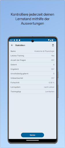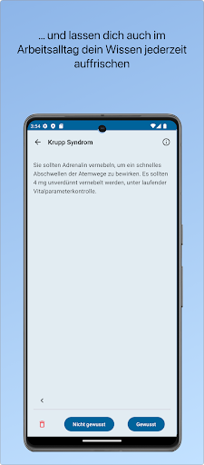 Notfallsanitäter App: Lernen auf dem neuesten Stand Seit über einem Jahrzehnt ist die \Notfallsanitäter App\ eine feste Größe in der Ausbildung und Weiterbildung von Rettungsdienstpersonal. Nach einem vollständigen Update im Jahr 2023 bietet sie jetzt eine noch intuitivere und benutzerfreundlichere Plattform für Ihr Lernen. Die neue Programmierung wird den Anforderungen der Zukunft gerecht. Mit mehr als 2100 kostenlosen Lernkarten und einer breiten Palette von Multiple-Choice-Fragen, die als In-App-Käufe verfügbar sind, ist die \Notfallsanitäter App\ Ihr treuer Begleiter auf dem Weg zum Abschlussexamen und darüber hinaus. Mit über 100 Unterkategorien deckt die App ein breites Spektrum von Themen ab, darunter Anatomie & Physiologie, Arbeitstechniken, Diagnostik, Medikamente und verschiedenste medizinische Notfälle. Ob Sie sich auf die mündliche Prüfung mit unseren speziellen Lernkarten oder auf das schriftliche Examen mit unseren Multiple-Choice-Fragen vorbereiten – die \Notfallsanitäter App\ hat das passende Lernmaterial für Sie. Ein besonderes Highlight ist die Möglichkeit, Ihre Lerneinheiten individuell zusammenzustellen und zu speichern. So können Sie Ihr Lernen exakt an Ihre Bedürfnisse anpassen und effizient Ihr Wissen vertiefen. Jede Multiple-Choice-Frage kommt zudem mit einer detaillierten Erklärung, die Ihnen nicht nur die richtige Antwort aufzeigt, sondern auch den Hintergrund dazu erklärt. Mit der \Notfallsanitäter App\ können Sie überall und jederzeit lernen, denn sie funktioniert vollständig offline. Ideal für den Gebrauch unterwegs, im Rettungswagen / Rettungswache oder zu Hause. Unser Live-Update-System hält Ihr Wissen immer auf dem neuesten Stand, indem es regelmäßig aktualisiert und ergänzt wird, ohne dass Sie ein App-Update herunterladen müssen. Mit über 100.000 Downloads und einer hohen Nutzerzufriedenheit ist die \Notfallsanitäter App\ nicht nur ein bewährtes Lerninstrument, sondern auch ein vertrauenswürdiger Partner in Ihrer Aus- und Weiterbildung. Laden Sie die \Notfallsanitäter App\ jetzt herunter und erleben Sie, wie das kontinuierliche Lernen zum Kinderspiel wird! FUNKTIONEN - umfangreiche Inhalte: -- mehr als 2100 Karteikarten -- mehr als 400 Multiple Choice Fragen -- mehr als 10 Hauptkategorien -- mehr als 100 Unterkategorien -- anschauliche Grafiken - individuell zusammenstellbare Lerneinheiten - keine Internetverbindung erforderlich (funktioniert offline) - Live Update System (für aktuelle Inhalte) - Speichern von Lerneinheiten - Herausnahme von Karteikarten möglich (z.B. von Karten, deren Inhalt bereits gesichert erlernt ist) - Wählen Sie zwischen verschiedenen Lernsystemen: -- Karteikartensystem nach Sebastian Leitner -- Nach 1 richtigen Antwort wird die Karte aus dem Stapel entfernt -- Nach 2 richtigen Antworten wird die Karte aus dem Stapel entfernt UPDATE Durch ein integriertes Updatesystem können alle Inhalte problemlos innerhalb von Minuten überarbeitet, erweitert und aktualisiert werden. Dies ermöglicht eine einfache und kontinuierliche Erweiterung der Lerninhalte. FEEDBACK Wir freuen uns über ihre Verbesserungsvorschläge und Anregungen und werden zeitnah an der Optimierung der App arbeiten. Bitte mailen Sie an kontakt@notfallsanitaeter-app.de. Besuchen Sie unsere Webseite für weitere Informationen. INHALTE Anatomie & Physiologie Arbeitstechniken Diagnostik Pädiatrische Notfälle Sonstige Notfälle Dokumentation Chirurgische Notfälle Internistische Notfälle Gynäkologie & Geburt Neurologische Notfälle Medikamente BILDRECHTE adimas, Pruser, ag visuell, oksun70, Giedrius - Fotolia.com & Stock - Adobe - stockshoppe #117436172 --- Rechtliche Hinweise: Die Europäische Kommission stellt eine Plattform für die außergerichtliche Online-Streitbeilegung (OS-Plattform) bereit, die unter www.ec.europa.eu/consumers/odr aufrufbar ist. Unsere E-Mail-Adresse finden Sie in unserem Impressum. Wir sind weder verpflichtet noch bereit, an dem Streitschlichtungsverfahren teilzunehmen.
