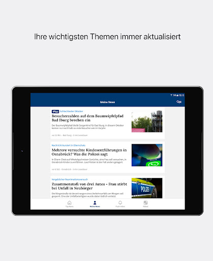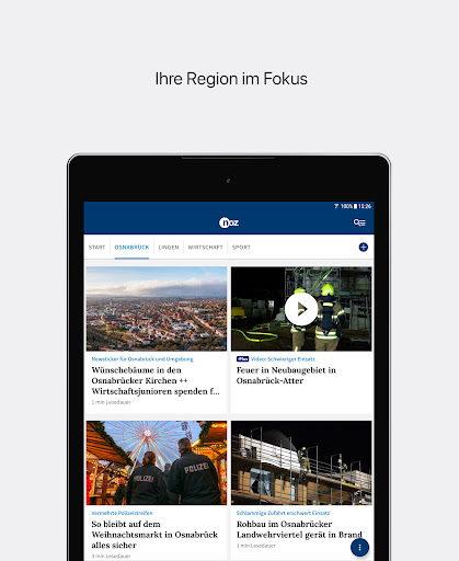 Nachrichten aus Ihrer Region: Mit der noz News-App für Android Smartphones und Tablets sind Sie immer bestens über das aktuelle Geschehen aus dem Raum Osnabrück, dem Emsland und der Welt informiert. Ab sofort noch lokaler, persönlicher und übersichtlicher. Keine Hand frei zum Lesen? Mit der Audiofunktion können Sie auch mit den Ohren lesen. Ob beim Autofahren, beim Joggen oder bei der Gartenarbeit: Klicken Sie auf das Play-Symbol im Artikel und lassen Sie sich die wichtigsten News vorlesen oder lauschen Sie einem unserer Podcasts. Auf der Playlist können Sie sich Ihre persönlichen Nachrichten zusammenstellen. Über die Top News verpassen Sie nie, was gerade das Wichtigste in der Region und in der Welt ist. Kurz und knapp fasst unsere Redaktion für Sie das Nachrichtengeschehen zusammen aus allen Regionalausgaben: - Neue Osnabrücker Zeitung - Meller Kreisblatt - Wittlager Kreisblatt - Bramscher Nachrichten - Bersenbrücker Kreisblatt - Lingener Tagespost - Meppener Tagespost - Ems-Zeitung VORTEILE DER NOZ NEWS-APP + Mobiloptimierte Darstellung der Artikel- und Übersichtsseiten + Intuitives Bedienkonzept: per Wischgeste durch Themen und Artikel + Ihre Region im Fokus + Personalisierter Schnellzugriff auf die Themen, die Sie interessieren + Ihre persönlichen Artikelempfehlungen unter \Meine News\ + Gelesen-Markierung der Artikel + Vorlesefunktion der Artikel + Persönliche Playlist + Push-Benachrichtigungen nach Ihren Interessen + Alle Einstellungen innerhalb der App + Stichwort-Suche + Vereinfachtes Teilen der Artikel in sozialen Medien + Direktverweis zur noz E-Paper App + Rätselbereich PREISE Als bestehender Plus oder Premium Abonnent können Sie die App mit Ihren Login-Daten vollumfänglich nutzen und auch die Plus Artikel lesen. Sie können auch ein Google Play Abo abschließen. Haben Sie Anmerkungen zur noz News-App? Dann lassen Sie uns gerne eine Nachricht an apps@noz-digital.de zukommen. Wir freuen uns auf Ihr Feedback! AGB: https://www.noz.de/mehr/agb Datenschutzerklärung: https://www.noz.de/mehr/datenschutzerklaerung
