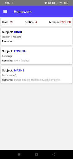 An application full of features for parents and students where they can see number of updates given by school. Features- # All types of notifications and messages (Notice, Attendance, Fees, Holidays, Alerts). # Homework (Details, Downloadable Attachment). # Attendance Calendar. # Fees Details. # Fees Summary. # Fees Paid History. # Gallery. and many more...