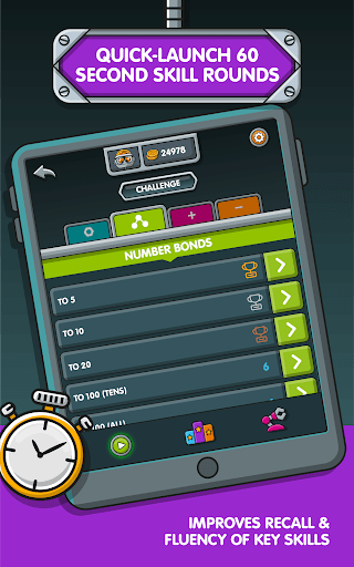 Addition & Subtraction. Solved. From the innovators who bring you Times Tables Rock Stars, comes a highly engaging platform for learning to add and subtract… NumBots! NumBots is all about every child achieving the “triple win” of understanding, recall and fluency in mental addition and subtraction, so that they move from counting to calculating. Suitable from Year 1 (UK) or Kindergarten (US) upwards. Younger players will be able to access the early stages from a mathematical point of view but will find it increasingly harder to reach the level of fluency required to make progress.