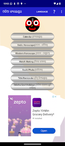 This is a calendar application useful for all the people Orissa (Odisha) and all the Odia (Oriya) people living outside Odisha (Orissa). It shows all festivals important for Oriya people as well as important Indian festivals for 150 years starting 1940, including the calendar for the year 2025. The most important feature of this calendar application is that this is completely in Odia (Oriya) language. This calendar app shows the daily Indian Day, Tithi, Rasi and Nakshatra, Yoga, Karana along with their duration and the important days when you tap on a date. It also shows the local Sunrise and Sunset times as well as special times of the day such as: Amruta bela, Mahendra bela, Bara Bela, Kala Bela, Kala Ratri, Rahukala, Gulikakala and Yamaganda. Also, it shows daily Tara suddhi and Ghata Chandra, Ghata Rashi Ghata Nakshatra and Ghata Tithi details. Apart from these, it also shows pictures associated with some special days when you tap on a date. One can add reminder for a special day by long pressing on a special day on the calendar. Search button on the action bar can be used to search a festival, rashi, nakashatra, tithi etc. You can go to a particular month and year, by tapping on corresponding menu on the action bar. You can change the color and appearance of the screen by selecting various themes from the drop-down menu at the right hand corner of the app. The application also creates a home screen widget displaying today’s information in Oriya (Odia). Once the paper calendar for a future year is published, the data of the app will be checked against the paper calendar data, and if any variation is found, it will be corrected. It also provides \Rashi Phala\ - Daily, Monthly and Annual Rashi Phala, for your Moon based Rashi. You can tap the corresponding menu on the top menu bar of the application. You can generate any horoscope (Kundali or Rashi Chakra) by selecting \Jataka\ menu. You have to provide date, time and place of birth for this in the dialog box appears. You will get the general predictions, Vimshottari Dasha prediction, Gochara (Transit) prediction and all divisional chart details. Support for both Vedic and Western Astrology is there. Progressive horoscope prediction based on western Astrology is also provided in this app. You can also do match making based on Odia (Oriya) astrology, by selecting the corresponding menu. You can add your custom reminders based on Tithi, Rashi or Nakshatra by using specific button on the main screen. These reminders will be notified starting 2 days prior to the events and also will be displayed in the widget. It also provides daily notifications containing date, weekday, tithi and special day description (Parva Parvani) if any. It is an attempt to help all the Odia (Oriya) friends to easily know the significant days of Odia (Oriya) Calendar. It is also an emotional attempt to display the entire calendar in Odia (Oriya). It is Odia Panji on mobile, on tablet. It is free. Please try it now. May Lord Jagannath help to bring out more such Odia (Oriya) applications !