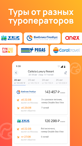 Onlinetours: горящие туры – удобный и быстрый поиск туров. Больше, чем просто туристическое агентство – это сервис, где вы можете легко забронировать номер в отеле или приобрести путевки и горящие туры онлайн. Здесь вы найдете туры и горящие путевки по всему миру, включая туры по России, а также популярным и экзотическим направлениям ближнего и дальнего зарубежья. Гастрономические путешествия и отдых на море в Турции, Египте или Таиланде. Премиальный тур на остров Маврикий, Мальдивы и Бали. И, конечно же, Китай, ОАЭ, Черногория и многое другое! Незабываемые путешествия и отдых на море С нами подготовка к отпуску – сплошное удовольствие! Миллионы туров в более 50 стран в нашей удобной системе поиска. Зачем идти в обычное туристическое агентство, если можно приобретать путешествия и горящие туры онлайн? Не важно, что вы выберете: раннее бронирование или горящий тур, у нас вы найдете именно то, что нужно. Если необходимо, наши эксперты помогут вам подобрать идеальный вариант для вашего отдыха. Мы собрали для вас - Туры по России и странам ближнего и дальнего зарубежья - Актуальные цены от 130+ ведущих туроператоров, включая БиблиоГлобус, Anex Tour, Coral Travel, Sunmar, Tez Tour, Pegas Touristik, Fun&Sun, Intourist - Туры и горящие путевки по различным направлениям со скидкой до 50% - Комфортный поиск туров при помощи удобных фильтров - Фотографии, полные описания, рейтинги, честные отзывы от туристов по отелям Преимущества нашего сервиса - Подбор и покупка тура с помощью смартфона, не выходя из дома - Гарантия лучшей цены – у нас нет никакой надбавки к стоимости туроператора - Возможность частичной оплаты – первый взнос 10-50%, остальное за пару недель до вылета - Поддержка профессиональных специалистов на всех этапах покупки, бронирования и оформления - Круглосуточная поддержка 24/7 любым удобным для вас способом Легко найти подходящий тур и оплатить его в считанные минуты, а наш суперсервис позволит ни о чём не беспокоиться, собираясь на отдых. Найти и приобрести тур в приложении очень просто - Выберите страну, город или курорт - Отметьте подходящие даты вылета и длительность путешествия - Сравните отели, рейсы и цены от различных туроператоров - Выберите наиболее подходящий по всем параметрам тур - Оплатите тур полностью или частично банковской картой либо с помощью Apple Pay В состав и стоимость тура, как правило, входят проживание, питание, перелет, трансфер и медицинская страховка. Также, по вашему запросу, мы готовы предложить расширенные услуги, такие как визовое сопровождение или страховку от невыезда. Скачайте Onlinetours прямо сейчас и бронируйте путешествия и горящие туры онлайн. Туры и горящие путевки по всему миру от ведущих туроператоров. Путешествия и отдых на море по лучшим ценам. Удобный поиск туров по фильтрам. Туры по России, Китай, Турция, Египет и множество других популярных и экзотических направлений. Здесь вы легко найдете тур, который нужен именно вам! Всем незабываемых путешествий!