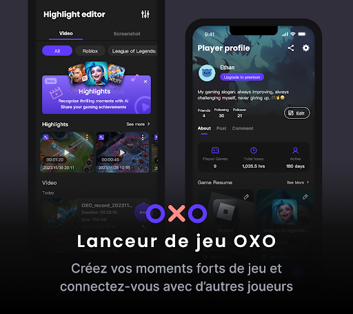 Votre téléphone est-il rempli de vidéos de jeux, mais créer des compilations de moments forts semble être un défi ? Vous recherchez des joueurs partageant les mêmes idées pour partager le plaisir et discuter de jeux ? Ne cherchez plus—OXO Game Launcher est là pour vous ! Utilisez l\IA pour créer sans effort des compilations accrocheuses et connectez-vous avec des joueurs dans notre communauté. Êtes-vous prêt à révolutionner votre expérience de jeu ? Téléchargez OXO Game Launcher maintenant ! Caractéristiques clés d\OXO : Créez vos compilations de moments forts de jeux avec juste un clip Vous voulez partager vos meilleurs mouvements et moments excitants dans les jeux ? Essayez l\éditeur de moments forts OXO - avec un seul clic, vous pouvez instantanément créer votre moment fort. C\est un éditeur alimenté par l\IA, rapide et gratuit ! Connectez-vous et passez du temps facilement avec des joueurs partageant les mêmes idées Connectez-vous mondialement sur OXO ! Profitez de discussions dédiées aux jeux, organisez des batailles, trouvez des coéquipiers ou demandez de l\aide. Taguez simplement le jeu, et OXO dirige votre publication vers le bon forum. Suivez et gérez votre expérience de jeu de manière transparente Le profil de joueur OXO vous aide à suivre votre parcours de jeu—durée de jeu, genres de jeux, et jeux récents. Partagez facilement votre jeu actuel et votre identifiant de jeu avec d\autres joueurs ! Jouez, formez une équipe et discutez avec votre ami de jeu à tout moment OXO ne vous aide pas seulement à découvrir des joueurs partageant les mêmes idées, mais vous permet également de les ajouter en tant qu\amis et de discuter avec eux directement dans notre application—à tout moment que vous voulez ! Gérez vos applications de jeux en un seul endroit sans tracas Organiser et catégoriser vos jeux mobiles devient un jeu d\enfant ! Avec OXO, vous pouvez garder tous vos jeux en un seul endroit. Fini de perdre votre jeu préféré dans une mer d\applications !