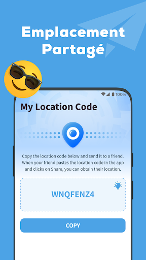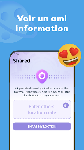 Location Share est une application conviviale qui vous permet de partager facilement votre position avec vos amis ou votre famille qui vous sont chers. Le partage de position nécessite le consentement mutuel des deux parties. Mise à jour de l\emplacement en temps réel : lorsque vous partagez avec succès votre emplacement avec vos amis ou les membres de votre famille, Location Share mettra à jour les informations de localisation des membres de la famille ou des amis qui partagent votre emplacement avec vous en temps réel, afin que vous puissiez vérifier leur emplacement . Suivre l\emplacement d\amis ou de membres de la famille : après avoir ajouté les informations de localisation d\amis ou de membres de la famille à suivre, si l\emplacement d\amis ou de membres de la famille change, Location Share vous le rappellera par le biais de notifications. Bien sûr, vous pouvez également désactiver ce rappel de notification dans l\application. Ma position : bien sûr, vous pouvez également vérifier votre position dans l\application. INTERFACE CONVIVIALE : Notre application est conçue dans un souci de simplicité et de convivialité. Gérez facilement vos paramètres de partage de position grâce à notre interface intuitive. Téléchargez le partage de position maintenant ! Déclaration: 1. Location Share est une application qui ne peut partager des informations de localisation qu\avec le consentement des deux parties. 2.Location Share n\a besoin que de quelques autorisations (principalement des autorisations de localisation, des autorisations de notification) pour protéger la confidentialité de votre réseau. 3.Location Share n\est pas une application d\espionnage ou de surveillance secrète.