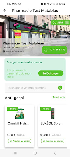 Votre Pharmacie à domicile avec Pharmao, faites vous livrer vos médicaments et parapharmacie ou récupérer votre commande prête à la pharmacie en click&collect. Le service de livraison avec les pharmacies est disponible 7j/7 ! Comment Utiliser Pharmao, Votre Pharmacie Mobile ? • Choisissez la pharmacie de votre choix • Rajoutez vos documents: carte vitale, ordonnance délivrée par votre médecin via une consultation ou téléconsultation (Doctolib, Qare, Livi, autre). • Choisissez vos produits de parapharmacie ou médicament sans ordonnance • Livraison rapide par votre pharmacie : Commandez chez Pharmao et recevez vos produits directement à votre domicile grâce à notre service de livraison express de pharmacie. Quels Produits de Pharmacie Commander ? Trouvez tous vos produits de parapharmacie disponibles dans nos pharmacies partenaires : • Soins de la peau • Soins du corps • Hygiène bucco-dentaire • Produits capillaires • Hygiène intime • Nutrition et compléments alimentaires • Maternité et bébé • Produits de première nécessité • Santé sexuelle • Soins des pieds • Soins solaires • Optique : • Aromathérapie et relaxation • Soins pour homme • Beauté et cosmétiques Pharmao, votre pharmacie en ligne, dessert plus de 250 villes françaises, assurant ainsi une couverture nationale. Pourquoi Choisir Pharmao, Votre Pharmacie à Domicile ? • Accessibilité de la pharmacie : Si vous êtes dans l’incapacité de vous déplacer ou si vous êtes positif au virus du covid, vous pouvez effectuer une téléconsultation avec votre médecin comme doctolib, qare, livi et intégrer votre ordonnance et votre carte vitale dans notre application pour vous faire livrer vos médicaments avec votre pharmacie. • Confidentialité garantie par la pharmacie : Nous protégeons vos données selon les normes strictes HDS. • Suivi professionnel par la pharmacie : Nos pharmaciens et médecins partenaires assurent un suivi méticuleux de vos antécédents médicaux. • Prévention du risque de contamination : Évitez les files d\attente en pharmacie et le risque de contamination grâce à nos services de livraison de pharmacie à domicile. • Large réseau de pharmacies partenaires : Avec plus de 2000 pharmacies partenaires, Pharmao vous garantit une disponibilité et une livraison rapide, partout en France. Promotions des pharmacies Découvrez les offres exclusives de votre pharmacie avec Pharmao : Ne manquez pas les promotions exceptionnelles proposées par les pharmacies autour de vous. Recevez des alertes de bons plans directement sur votre smartphone. Que vous choisissiez de récupérer vos achats directement en pharmacie ou de bénéficier de notre service de livraison à domicile, Pharmao vous assure des économies sur vos produits de santé et de bien-être. Commandez dès maintenant et profitez des avantages offerts par votre pharmacie mobile ! Pharmacies de garde: trouvez la pharmacie autour de vous Accès rapide à une pharmacie de garde avec Pharmao : En cas d\urgence, que ce soit un dimanche, un jour férié ou au milieu de la nuit, Pharmao vous aide à trouver la pharmacie de garde la plus proche. Utilisez notre application pour localiser immédiatement une pharmacie ouverte près de chez vous et obtenez l\assistance nécessaire sans délai. Avec Pharmao, la pharmacie en ligne, vous gagnez du temps et accédez rapidement aux soins médicaux dont vous avez besoin. Prenez le contrôle de votre santé avec Pharmao, votre partenaire pharmacie mobile !