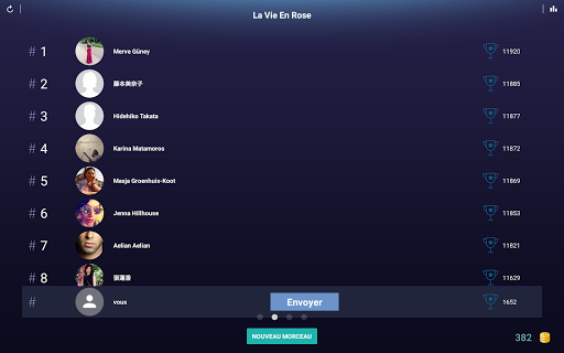 Jouez toute sorte de musique gratuitement. Aucune expérience requise ! Piano Yokee est si facile que vous pourrez jouer comme un pro en quelques secondes. Découvrez un riche recueil de musique dans une grande variété de genres : musique classique, succès populaires, musique traditionnelle et chansons pour enfants avec de nouveaux morceaux ajoutés gratuitement tous les jours ; perfectionnez vos favoris, partagez-les et entrez en compétition avec vos amis. Caractéristiques principales : - ÉCOUTEZ : choisissez parmi une riche collection musicale avec différents genres et thèmes. - JOUEZ : jouez un morceau choisi à différents niveaux (débutant, intermédiaire, avancé), pratiquez les accords et créez de la belle musique. Vos scores augmentent selon la qualité de votre performance. - DÉFIEZ : vous réalisez vos meilleurs scores et le jeu commence vraiment en invitant vos amis à jouer le même morceau par WhatsApp, Facebook, Twitter, SMS, e-mail, etc... pour savoir qui joue mieux ! Des chefs-d\œuvre de Mozart ou des accords fous de rock ? Notre clavier virtuel vous permettra de les jouer facilement, sans avoir appris le piano. De plus, grâce à la fonction unique et super cool \style duo\, vous pourrez vous faire accompagner. Grand choix de musique : - Genres musicaux : musique classique, traditionnelle, Rock, Pop, Rap, chansons classiques, pour enfants, d\amour et plus. Chansons actuelles les plus populaires : ✪ Mistral Gagnant - Coeur de pirate ✪ On ira - Zaz ✪ Brisé - Maître Gims ✪ Dernière Danse - Indila ✪ Je Vole - Louane ✪Love Yourself by Justin Bieber ✪Let it Go by Disney\s Frozen ✪Halo by Beyonce ✪I\m Not the Only One by Sam Smith ✪Drake by Hotline bling ✪La vie en rose by Edith Piaf ✪Stay by Rihanna ft. Mikky Ekko ✪Flashlight by Jessie J ✪Sapés comme jamais by Maître Gims ft. Niska ✪Royals by Lorde ✪Happy by Pharrell Williams ✪Classical favorites: ✪Clair de Lune by C. Debussy ✪Adagio in G minor by T. Albinoni ✪Für Elise by L.V. Beethoven ✪A Little Night Music by W.A. Mozart ✪Traditional songs: ✪House of the rising Sun by Animals ✪Amazing grace ✪La Marseillaise et beaucoup d\autres .... Autres principales caractéristiques : - Tutoriel facile à suivre - Aperçu de 30 secondes des morceaux pour en apprendre la mélodie - 3 niveaux de difficulté pour chaque morceau (débutant, intermédiaire, avancé) - Plus vous jouez, plus vous pouvez gagner de pièces pour débloquer encore plus de morceaux. - Accès facile aux options : Collection musicale, Mes morceaux, Assistance, Paramètres et plus. Avec déjà plus de 20 millions d\amateurs sur Yokee karaoke, notre nouveau Yokee Piano pourrait devenir une autre application favorite du grand public. En fait, vous allez bientôt pouvoir accompagner les chanteurs Yokee avec cette application, de sorte que vous pourrez chanter des chansons tout en jouant les mélodies ! Et ce n\est pas tout ! Notre engagement envers les applications de musique amusantes et notre amour des instruments de musique ne s\arrête pas là. INDICE : restez connecté pour nos nouvelles applications de guitare et de batterie à venir ;-) Feedback Afin de pouvoir améliorer notre application de piano, n\hésitez pas à nous envoyer vos questions ou suggestions ! support@yokee.tv