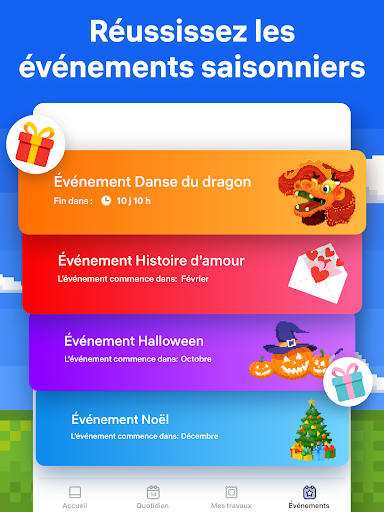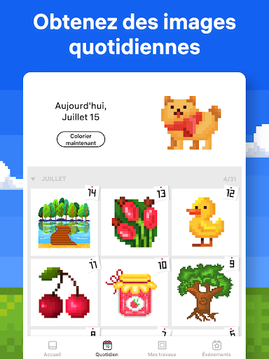 Coloriez par numéro pour vous détendre l\esprit avec Pixel Art, l\un des premiers jeux de coloriage sur Google Play et l\un des plus complets! Rejoignez des millions de joueurs satisfaits et soulagez votre stress grâce à un jeu de peinture par numéro et de coloriage dont le créateur n\est autre qu\un des meilleurs développeurs. ️ Conçu par des experts de jeux de dessin et adulé par les joueurs du monde entier, Pixel Art vous invite à vous lancer dans un voyage de coloriage méditatif grâce à des coloriages palpitants. Explorez plus de 20 000 illustrations ou créez vos propres chefs-d\œuvre pixelisés. Peignez par numéro et profitez de l\expérience apaisante des jeux de coloriage de Pixel Art. Pourquoi jouer à Pixel Art ? Profitez d’une facilité surprenante ! Choisissez le dessin de votre choix et donnez-lui de la couleur en le peignant un numéro à la fois. Pixel Art utilise une interface simple et intuitive, vous permettant de savoir exactement quelle couleur appliquer et à quel endroit. Profitez d’une collection de plus de 20 000 images ! Mandalas, fleurs,... et bien plus encore ! Nos pages de coloriage sont déclinées en pluisieurs niveaux de difficulté, s’adaptant à tous les goûts et à toutes les humeurs. Accédez à de nouvelles images chaque jour ! Grâce à l’ajout quotidien de nouvelles images gratuites à colorier, il est garantie que vous ne vous ennuierez jamais ! Découvrez une toute nouvelle fonctionnalité — Jardin de fleurs ! Coloriez des objets uniques, aménagez votre propre jardin et recevez des récompenses. Plongez dans un nouveau monde virtuel avec Pixel Art ! Découvrez des événements saisonniers uniques ! Saisons, fêtes, festivals... Coloriez par numéro des images thématiques pour décrocher des bonus exclusifs ! Composez votre propre collection d’images à partir de thèmes de coloriage populaires, tels que Noël, Halloween, Action de grâce et bien plus encore. Pixellisez vos propres photos grâce à la Pixel Art Camera ! Téléchargez une image, définissez son niveau de difficulté et profitez d’un pixel art personnalisé ! Grâce à notre créateur d’images pixellisées révolutionnaire, vous pourrez transformer toutes vos photos en de véritables œuvres d’art ! Coloriez en 3D ! Dans Pixel Art, vous pouvez également peindre par numéro des objets 3D, vous garantissant une expérience de coloriage sans précédent ! Utilisez des boosters de coloriage pour créer les images les plus détaillées ! Choisissez le splash de couleur pour colorier rapidement des zones de votre modèle ou utilisez la baguette magique pour donner de la couleur à des cases d’un numéro donné. Tous les experts s’accordent à le dire : les jeux d’art et de dessins sont un excellent moyen de se détendre et d’évacuer le stress. Dans Pixel Art, vous avez les cartes en main ! Choisissez votre modèle, jouez où vous voulez et arrêtez-vous quand vous voulez. Pas de limite de temps ni d’objectifs de score pour venir vous mettre la pression. Prenez simplement votre téléphone et profitez de ces merveilleux jeux de coloriage partout et en tout temps ! Inspiré par l’art-thérapie et les meilleurs jeux de dessin, Pixel Art est un excellent remède contre le stress et l’ennui. Choisissez vos couleurs, appliquez-les minutieusement sur le modèle numéroté, et admirez vos créations prendre vie ! Plongez sans plus attendre dans l\univers haut en couleur des jeux de Pixel Art ! Libérez l\artiste qui sommeille en vous et évacuez votre stress jour après jour grâce à ce jeu de coloriage d\un genre nouveau ! Nous nous engageons à apporter la meilleure expérience de coloriage à nos joueurs. N\hésitez pas à nous faire part de vos commentaires à support@easybrain.com. Rejoignez notre communauté en ligne sur Facebook, profitez encore plus de la joie qu\offre Pixel Art : https://www.facebook.com/pixelartcolor Conditions d\utilisation : https://easybrain.com/terms Politique de confidentialité : https://easybrain.com/privacy