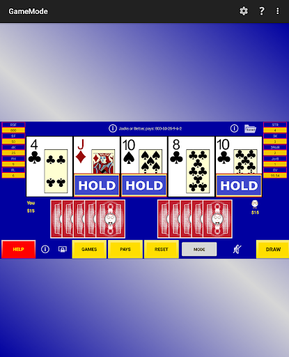 Play for fun, practice or get perfect hold advice for many types of Video Poker games and associated pay tables one might encounter in real casinos including progressive versions. This version, the Lite version, comes with 15 games activated with 16 activated pay tables (one game has two). Upgrading to the Pro+ Version is always available. Once a game type and pay table are selected, there are three different modes of usage: Perfect Hold Advice - select five cards from a deck and this app shows a perfect hold hand, that is, the cards to hold that maximizes the average or expected long-run payouts. (Some hands have more than one optimal play and you set the criteria to break the ties. These hands are indicated.) Scored Practice - here a random hand is dealt, the user selects hold cards and then this is rated against a perfect hold hand. Game Mode - a player just plays the game for fun where random cards are dealt, the player selects hold cards, a draw is made and any payouts recorded. The same draws are used to fill-in a perfect hold hand for comparisons. You are shown what is a perfect hold on each hand after play. Each hand, regardless of mode, is saved for later review. Trip Recorder - this feature is used to record data associated with video poker gambling trips or activity. A Money Management feature gives classic gambler\s ruin probabilities. Each Perfect Play is explained in detail if desired. Extensive help screens are provided as are information buttons throughout the screens. The Free games are: Aces and Faces,; Acey-Deucey Poker; All American; Bonus Poker Deluxe; Bonus Royal Double, Double Bonus; Deuces Wild; Deuces Wild Bonus; Double Bonus Poker; Jacks or Better; Joker Poker (Kings); Quick Quads Double Bonus; Tens or Better; Ultra Bonus Poker; USA Poker; and White Hot Aces. See our website for the list of supported games in the Pro+ version (over 400). NOTE: Our Apps teach you how to play Perfect Video poker through simulated play with feedback on errors. No prizes or money are involved. In short, no opportunity exists to win real money or prizes based on the outcome of a simulated game in our Apps.
