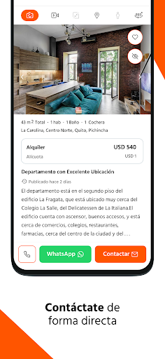 Somos el sitio líder de inmuebles en Ecuador que reúne a quienes quieren alquilar o comprar de forma simple y segura con vendedores particulares, inmobiliarias y desarrolladoras. ¿Qué puedes hacer con nuestra app? • Buscar casas, apartamentos, locales comerciales, oficinas, terrenos, proyectos inmobiliarios para compra, alquiler o alquiler temporal. • Usar los filtros y obtener listados con tus preferencias de búsqueda. • Acceder a la información más relevante de cada inmueble de una forma sencilla y ágil. • Navegar por el mapa para encontrar inmuebles en la zona que te gusta. • Personalizar y guardar tus búsquedas y avisos favoritos. • Recibir notificaciones con las últimas novedades de tu búsqueda y nuestras recomendaciones. • Contactar a los anunciantes para agendar visitas. Tu próximo hogar está al alcance de tu mano. ¡Descarga nuestra app y encuéntralo hoy! https://help.plusvalia.com/s/article/Pol%C3%ADtica-de-Privacidad-pl
