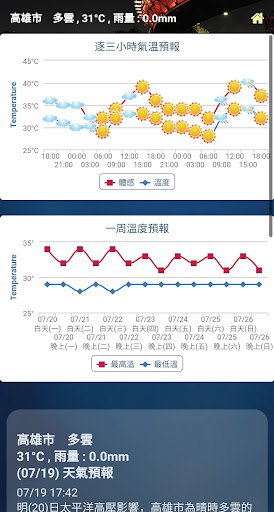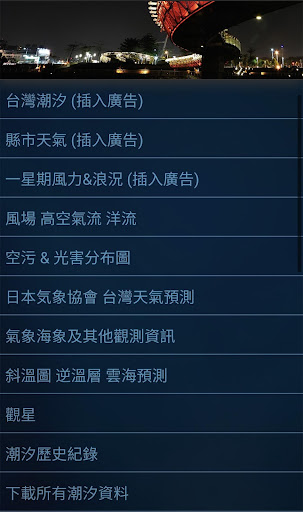 提供台灣天氣氣象各項資料以及圖形式潮汐顯示,所提供的資訊包含,天氣,潮汐文字,潮汐圖,風力圖,尋星 GOTO,魚況預測,風力風向預測,浪高,洋流,地震 RMT,空氣品質 PM2.5 ,觀星天氣資訊 雲海 斜溫圖 逆溫層, 光害 等等。