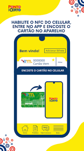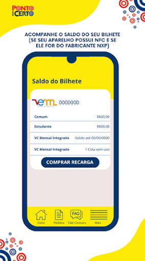 Com o nosso aplicativo Ponto Certo Recife você pode carregar seu cartão de transporte VEM, inserir créditos em seu Celular pré-pago e adquirir créditos para serviços digitais como filmes, jogos e e-books onde você estiver! De forma simples e rápida. Facilitamos o uso do transporte público em Recife e usuários de telefonia pré-pago. Carregue seu VEM no celular com rapidez e segurança! Coloque créditos no: - Comum - Estudante - RMN - Celular pré-pago Além disso, você também pode: - Inserir créditos em seu celular pré-pago de todas as operadoras. - Comprar créditos para serviços digitais como jogos, filmes e e-books - Pagar com cartão de crédito, boleto ou transferência bancária. - Acompanhar o saldo de seu cartão de transporte digitando o número do seu cartão. - Gerenciar mais de um cartão de transporte. - Pagar taxa de renovação de estudante. *Faça a validação para liberar os créditos no seu cartão VEM em validadores de ônibus ou em pontos comerciais credenciados da Rede Ponto Certo. Siga-nos nas redes sociais: facebook.com/RedePontoCerto twitter.com/rpc_pontocerto instagram.com/redepontocerto Conheça nossa política de privacidade https://www.redepontocerto.com.br/politica/ Saiba mais em: https://www.redepontocerto.com.br/#aplicativospontocerto