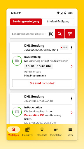 Mit der kostenlosen Post & DHL App sind die wichtigsten Post- und Paket-Services jederzeit und überall auf dem Smartphone oder Tablet griffbereit – vom Kauf von Brief- oder Paketmarken bis zur Sendungsverfolgung. Als registrierter Kunde profitieren Sie übrigens von weiteren Vorteilen. VERFOLGEN • Sendungsverfolgung inkl. Barcode-Scanner • Alle Sendungen auf einen Blick inkl. Zustellzeitpunkt und Detailinfos • Alle verfügbaren Lieferoptionen für eine Sendung buchen • Briefankündigung: Kostenlose Ankündigung der in Kürze zugestellten Briefe inkl. Umschlagsfoto und Push-Benachrichtigung • Sendungsstatus auch für Briefsendungen (z.B. Einschreiben oder Prio) und Warenpost anzeigen • Matrixcodes auf Briefmarken vor dem Versenden scannen und Basis-Sendungsverfolgung für Briefe nutzen • Nach Scan mehr Informationen zur Briefmarke und dem Motiv erfahren • Bis zu 10 Sendungen speichern und verwalten • Push-Mitteilung über aktuellen Status der Sendung und neuen Briefankündigungen • DHL Live-Tracking: Sendungen in Echtzeit auf einer Karte verfolgen inkl. Countdown und Zustellzeitfenster Zusätzlich für eingeloggte Nutzer: • Bis zu 100 Sendungen speichern und verwalten • Automatische Anzeige vieler Pakete mit Postnummer • Digitale Benachrichtigung bei Zustellung an einem Wunschort, beim Nachbarn oder in der Filiale • DHL Live-Tracking: Am Morgen der Zustellung per E-Mail und/oder Push-Nachricht eine Paketankündigung mit Angabe des 90-Minuten Zustellzeitfensters erhalten sowie bei vielen Sendungen eine zusätzliche Benachrichtigung ca. 15 Minuten vor Zustellung FRANKIEREN • Kauf von Porto für Päckchen- und Paketversand innerhalb Deutschlands, der EU und der Welt • Buchungs-Funktion von Abhol-Aufträgen • Zugriff auf lokales und Online-Adressbuch zur Auswahl von Empfänger- und Absender-Adressen • Versandmarken in 10er Schritten nach Bedarf zu einem Sparset kombinieren und bis zu 20% der Versandkosten sparen • Bezahl-Funktion über PayPal, Kreditkarte oder Lastschrift • Anzeige eines QR-Codes zum kostenlosen Druck der Mobilen Paketmarke in Filialen, an Packstationen oder beim Zusteller • Anzeige der Paketmarke als PDF zum Druck oder Weiterleitung als E-Mail • Stornierungsfunktion für gekaufte Warenkörbe • Anzeige der Warenkörbe der letzten 30 Tage • Porto für Postkarten, Standardbriefe, Kompaktbriefe und Großbriefe in der App anfordern, online bezahlen und sofort als Mobile Briefmarke oder Internetmarke nutzen • Mithilfe des Portoberaters das passende Porto ermitteln Zusätzlich für eingeloggte Nutzer: • Synchronisierung der Warenkörbe der DHL Online Frankierung der letzten 30 Tage • Speichern Ihrer Favoriten in Ihrem DHL Kundenkonto STANDORTE • Packstationen-, Paketboxen- & Filial- und Paketshop-Suche inkl. Angaben zu Öffnungszeiten, Angebot und Entfernung • Ergebnisse als komfortable Karten- & detaillierte Listenansicht • GPS-unterstützte Suche oder manuelle Eingabe möglich PACKSTATION • Details zu Packstation-Sendungen (inkl. Abholcode) • App-gesteuerte Packstationen per App bedienen • Anzeige des Standortes, an dem das Paket zur Abholung bereit liegt • Per Push informiert werden, sobald Ihr Paket in der Filiale oder Packstation abholbereit ist • Einmalige Geräteaktivierung, z.B. per Scan der Kundenkarte oder eines Aktivierungscodes per Brief. MEINE MARKEN • Alle Mobilen Marken für Pakete und Retouren auf einen Blick • Einfach an Packstationen, in Filialen und bei unseren Zustellenden Versenden ohne selbst zu drucken MEHR • Anzeige Ihrer Benutzerdaten • DHL Kundenkonto: o Verwalten Sie Ihre Einstellungen zum Paket- und Briefempfang und empfangen Sie Ihre Pakete ganz flexibel, z.B. an der Packstation o Mit der Teilnahme am Bonusprogramm sammeln Sie beim Versand über die Online Frankierung und beim Paketempfang wertvolle Punkte, die Sie für Porto- und Shoppinggutscheine einlösen können • Konfiguration der Push-Mitteilungen • Hilfe, Services & Info: FAQs, Kundenservice-Kontakt (Facebook oder Servicechat) und weitere Informationen