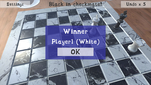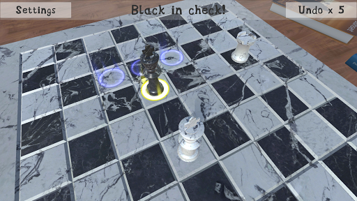 Premium chess game in 3D. Immersive environment. Premium marble chess board and pieces. Pinch or stretch to zoom out or in. Pan to rotate the chess board. 3 game modes: Human(White) vs Computer(Black) Computer(White) vs Human(Black) Human(White) vs Human(Black) 4 difficulty levels: Easy Medium Hard Master It indicates all the possible moves when you select a piece for next move. You can also undo the moves in case you make any mistake. It\s a perfect chess game for beginners to progress step by step. It\s a stunning place to challenge your friends.