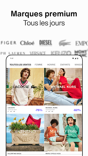 Profitez d’offres jusqu’à -75 % par rapport au prix conseillé sur toutes vos marques préférées de mode et de lifestyle avec Privé by Zalando. Inscrivez-vous sur notre outlet en ligne et découvrez un monde de ventes privées inédites, de pièces tendances et de looks captivants. Jusqu’à 75 % de réduction Profitez de nouvelles ventes privées chaque jour sur l’application de Privé by Zalando. Découvrez un univers de perles rares : des vêtements, des accessoires, des chaussures et bien plus encore pour compléter votre tenue à chaque saison et chaque occasion. Ne laissez pas passer nos offres et profitez de ventes privées exclusives dès aujourd’hui. ★️ Des ventes privées mode, maison et premium Vous recherchez des pièces de sportswear, une tenue unique pour une occasion spéciale, un voyage d’affaires ou un look décontracté pour rester à la maison ? Privé by Zalando vous invite à découvrir les bons plans des plus grandes marques. La mode de luxe est à votre portée, il suffit de vous inscrire sur notre site ! Nous garantissons à nos clients les meilleures offres de mode et d’accessoires pour satisfaire tous leurs besoins avec style. Téléchargez l’application ! Nouvelles ventes privées quotidiennes Avec Privé by Zalando, laissez-vous tenter par les marques tendances et profitez d’offres sur des vêtements, des chaussures, des accessoires ou des tenues pour la maison. Du lundi au vendredi, dès 7 h, ou les week-ends, dès 8 h du matin, économisez jusqu’à 75 % par rapport au prix conseillé sur des pièces exclusives. Communauté Privé by Zalando Retrouvez-nous également sur Instagram et sur Facebook pour découvrir nos lancements en avant-première. Vous voulez des bons de réduction ? Choisissez votre marque préférée et vous recevrez des notifications ainsi que des bons de réduction sur les derniers lancements. Obtenez encore plus de bons d’achat en nous suivant sur les réseaux sociaux, vous inscrivant à notre newsletter et autorisant nos notifications push. L’inscription sur notre application est gratuite. *sur le prix de vente conseillé