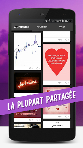 Obtenez des proverbes, citations et photos gratuitement sur votre mobile! Citations d´amour pour WhatsApp & Instagram. Proverbes pour toutes les émotions et toutes les situations. Ici vous trouvez les bons mots. Partagez des blague que des images sur Whatsapp et d´autres plateforme - en un seul clic! Ajouter vos dictons préférés aux favoris et toucher les cœurs et les esprits de vos amis. Des milliers de citations et proverbes - Utilisez-le comme papier peint ou partagez citations et photos. Envoyer des proverbes et citations quotidiennes à vos amis!