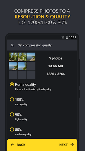 Redimensionne et compresse tes photos et images de manière rapide et facile avec notre redimensionneur d\images facile. Puma, le redimensionneur d\images facile à utiliser, est ton guichet unique pour réduire, redimensionner, diminuer, compresser et décroître des photos et autres images. Puma, le redimensionneur d\images et le compresseur les écraseront, les aplatiront et les réduiront à une taille d\image plus gérable. Cela signifie que tu peux plus facilement envoyer et partager tes photos par e-mail ou sur les réseaux sociaux. AVANTAGES ● Envoie de grandes images par e-mail ● Envoie des images par MMS ● Libère de l\espace sur ton téléphone ● Réduit les coûts de stockage dans le cloud ● Partage facilement des photos sur les réseaux sociaux ● Redimensionne des images pour ton site web ou page de commerce électronique ● Envoie des images avec un wifi faible ou des données limitées ● Utilise moins de données et économise de l\argent Puma te permet de rendre les photos plus petites sans perte visible de qualité de deux manières : ● Redimensionne des images – Avec Puma, tu peux redimensionner une photo ou une image en changeant ses dimensions (la résolution de l\image). Cela maintient le rapport d\aspect de ta photo ou image pour qu\elle ait toujours la même apparence. ● Comprime des images – Notre compresseur d\images te permet de compresser des photos en changeant leur qualité (d\une quantité qui n\est pas visible à l\œil humain). Cela est pris en charge par des types de fichiers tels que jpeg et webp. FACILE À UTILISER ● Réduis la taille des images à une taille de fichier – Tu peux considérablement réduire la taille d\une image, de Mo à Ko. Choisis simplement la taille d\image de sortie en Mo ou Ko et laisse notre redimensionneur de photos faire le reste. ● ‘Rends-la simplement plus petite’ – Si tu veux simplement rendre les images plus petites le plus rapidement possible, c\est pour toi. Cette option de redimensionnement d\image rapide et facile redimensionnera et compressera automatiquement une photo. FONCTIONNALITÉS ● Comparaison d\images – Compare la photo originale avec la nouvelle photo mise à l\échelle ● Préréglages préfabriqués – Ajuste rapidement et facilement les photos avec les préréglages intégrés ● Résolution personnalisée, taille de fichier et qualité – Ajuste la sortie de la photo pour qu\elle soit parfaite ● Compression par lot – Redimensionne et compresse plusieurs photos en même temps ● Envoie direct – Télécharge de nouvelles photos directement par e-mail ● Partage direct – Partage facilement tes photos sur les sites de médias sociaux les plus populaires ● Formats de photo multiples – .png, .jpeg, .jpg, .webp et plus AVANTAGES DU PREMIUM ● Pas de publicités – Hourra ! Les publicités aident à maintenir notre redimensionneur d\images gratuit. Le Premium les supprime toutes. ● Compresseur de photos par lot - Redimensionne un nombre illimité de photos ! Compresse toute ta bibliothèque de photos en une seule fois avec notre redimensionneur de photos par lot ● Change le dossier de sortie – Prends le contrôle total de tes photos redimensionnées ● Support direct par e-mail – Problème ? Question ? Parle directement à l\équipe ! ● Conserve les données EXIF – Conserve toutes les données intégrées dans tes photos redimensionnées, y compris l\heure, la date et le lieu où tu as pris la photo CONFIDENTIALITÉ Avec notre redimensionneur d\images, tes photos sont entre tes mains, les plus sûres qui soient. Quand Puma redimensionne des images, elles restent sur ton téléphone, et nous ne les voyons jamais. Nous ne récoltons pas tes données, ne les vendons pas à des tiers, ni ne faisons rien d\autre de malveillant.