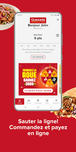 Quesada est fier d\apporter les saveurs du Mex aux Canadiens à travers le pays. Avec la nouvelle application mobile Quesada, nous vous facilitons la tâche tout en vous récompensant pour chaque commande passée. Commandez pour le ramassage ou la livraison, gagnez des points, soyez récompensé ! Gagnez 10 points pour chaque dollar dépensé avant taxes et échangez-les contre de la nourriture ou des boissons gratuites. Profitez de récompenses telles que de délicieux Churros, Burritos, Quesadillas ou Tacos ! Plus vous commandez, plus vous obtenez de points. Notre expérience de commande en ligne améliorée vous permet de passer votre commande pour la cueillette ou la livraison - directement depuis l\application ! Vous pouvez également accéder à des offres exclusives et stocker en toute sécurité une carte de crédit ou une carte cadeau pour faciliter le passage à la caisse.