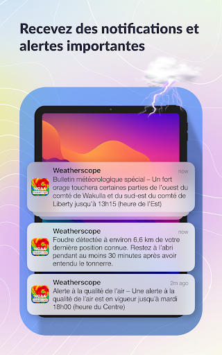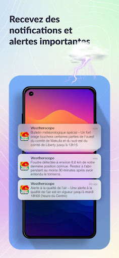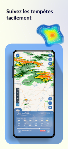 WeatherScope – Votre radar météo et outil de prévisions fiable WeatherScope vous offre des données météo précises et à jour, basées sur des sources internationales reconnues. Que vous suiviez les précipitations, surveilliez les orages ou consultiez simplement les prévisions locales, WeatherScope vous aide à rester prêt en tout temps. Fonctionnalités principales : Radar météo en direct et prévisions précises Surveillez la pluie, la couverture nuageuse et le vent en temps réel. Recevez des mises à jour minute par minute et des prévisions sur 10 jours. Suivi des orages et des tempêtes Suivez les trajectoires des tempêtes avec des données sur la position, la vitesse du vent et les impacts possibles. Alertes météo personnalisées Créez vos propres notifications météo selon vos préférences. Choisissez votre style et votre ton pour recevoir des alertes qui vous conviennent. Carte météo interactive Explorez les conditions en un coup d\œil grâce à une carte interactive avec superpositions radar, suivi des tempêtes et qualité de l’air. Alertes de foudre Soyez averti dès qu’un éclair est détecté près de vous afin de rester en sécurité. Prévisions locales détaillées Affichez la température, l’humidité, la pression, la vitesse du vent et plus encore pour votre emplacement actuel. Thèmes radar personnalisables Choisissez parmi plusieurs styles visuels, dont Ciel sombre, Noir et blanc ou Bleu universel. L’animation radar exclusive assure une expérience fluide. Données météo pour l’aviation Idéal pour les pilotes et passionnés d’aviation, avec suivi des vols en direct et météo de navigation. Radar de pluie et prévisions de précipitations Visualisez les zones de pluie en temps réel et planifiez vos activités en conséquence. Pour le Québec, le Canada et le monde entier De Montréal à Québec, en passant par Toronto ou à l’étranger, WeatherScope vous accompagne avec des prévisions fiables et localisées. Pourquoi choisir WeatherScope ? Données météo provenant de sources fiables à l’échelle mondiale Animation radar fluide et intuitive Prévisions toujours à jour Téléchargez WeatherScope dès aujourd’hui pour profiter d’une application météo complète, flexible et précise.