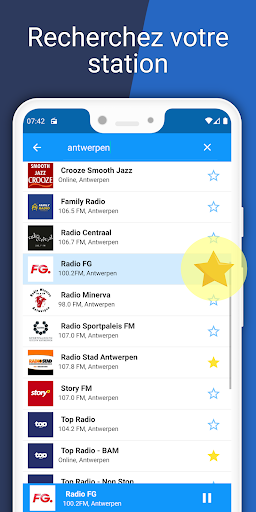 En utilisant Radio Belgium FM, vous avez accès à +300 stations de radio belges rapidement et facilement. La meilleure application radio pour écouter vos stations de radio Internet préférées. Profitez de la FM radio avec une interface facile à utiliser et une prise en main fluide et agréable. Pas de fonctionnalités consommatrices d\espace et pas de pannes gênantes Ayez à votre disposition toute la musique, nouvelles, sports, talk-shows et tout ce que vous voulez entendre en un seul clic. Maintenant, vous pouvez écouter vos stations en ligne préférées partout en bougeant simplement votre doigt. ️Connexion Internet requise! Caractéristiques - Fonction d\arrêt automatique. - Pas besoin de brancher les écouteurs. - Stockez et triez vos favoris comme vous le souhaitez. - Écoutez en arrière-plan tout en utilisant d\autres applications. - Découvrez le Top20 des stations les plus populaires auprès des utilisateurs. - Retrouvez vos stations préférées rapidement et facilement. - Découvrez de nouvelles radios dans votre région. - Partagez avec vos amis. - Contrôlez la lecture depuis la fenêtre de notification. - Les stations sont mises à jour périodiquement. Radio Belgique FM: Stations de radio belges Bel RTL Radio Contact NRJ Belgique Nostalgie Fun Radio RTBF Classic 21 RTBF La Première RTBF Pure FM RTBF VivaCité Bruxelles Nostalgie Chansons Françaises RTBF VivaCité Liège Nostalgie 80 DH Nostalgie Dance 80 Mint Nostalgie Dance 90 Chérie 80\s Nostalgie Age Tendre Nostalgie 60 RTBF Classic 21 80\s Nostalgie 90... Et beaucoup plus! Support Nos utilisateurs sont les plus importants pour nous. Nous fournissons une assistance rapide et fiable et répondons toujours aux questions que vous nous envoyez à l\adresse support@radiofmapp.com. Si vous rencontrez un problème avec l\une des chaînes, une incompatibilité avec votre appareil, etc, faites-le nous savoir et nous essaierons de résoudre le problème pour vous dès que possible. Nous lisons tous les courriels et les commentaires et répondons à toutes les demandes. Nous acceptons les suggestions pour ajouter vos stations de radio préférées si elles ne figurent pas déjà dans notre longue liste. À propos de... ๏Contact : support@radiofmapp.com ๏Si vous voulez ajouter des stations, faites-le nous savoir.