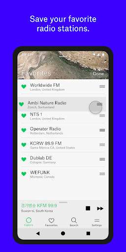 Welcome to the one and only official version of Radio Garden! Radio Garden allows you to listen to thousands of live radio stations world wide by rotating the globe. Every green dot represents a city or town. Tap on it to tune into the radio stations broadcasting from that city. By adding new stations every day and updating ones that no longer work, we hope to give you a smooth international radio listening experience. Save your favourite stations for later listening. Don\t worry: the radio will keep playing, even if your phone goes to sleep. More features coming soon. Much love, Radio Garden