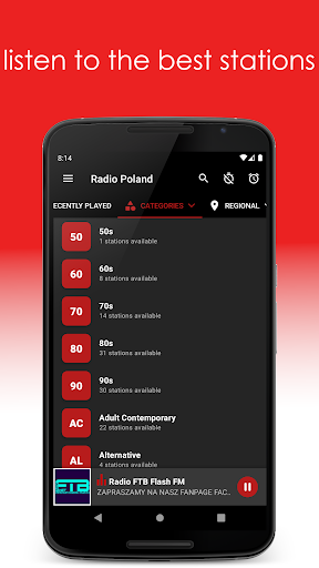 Radio Poland - Listen to all your favorite polish radio stations from Poland. With this new online radio app you can enjoy live music from over 600 polska stations for free. Save your favorite live radio stations to your favorites. Record your favorite songs to listen to them again later. Or let your favorite Polska Radio wake you up. Internet Radio from Poland, Top 10 Germany Radio and Top 10 England Radio is at your disposal. Many categories, such as disco polo to chillout, from hip-hop to rock or from pop to sports news can be selected to enjoy live radio. You can add the radio stations you want to your favorites and search the polish station by name. With Poland app you can also learn Polish or improve your knowledge for example. Want to fall asleep with your Polskie Radio? Just set a timer to stop the radio playback automatically. What is special about the Radio Poland app? Our app is a Polish live radio app that is equipped with the latest technology and uses 100% of Google\s main technology. We have minimized your mobile internet usage and developed an uninterrupted as well as free live radio app for Polish people. Features of Radio Poland: * Modern and an easy to use application, * Ability to play online radio in the background, * Polish Radio stations sortable by categories, * simple radio search engine, * record the broadcast and listen to it later, * display the song title while listening to the radio station, * display the album cover while the polish music song is playing, * automatically stop when the phone rings while listening to the internet radio, and start again when you are done talking, * sleep mode - automatically turn off after the desired time has elapsed, * Ability to stop the radio from the notification screen, use the forward or back buttons to switch to other radios, * Compatible with Android Auto and Bluetooth - listen to live radio in your car or on your bluetooth device, * Radio alarm function - can be scheduled for the whole week. If you want to listen to current news you can turn on for example RMF, Polskie Radio, Radio 5, Radio Jura, Radio Kielce, Radio Olsztyn, Radio Ostrowiec, Radio Piotrkow, Radio Poland, Radio Rekord, Radio Weekend, Tok FM to keep up to date. Do you want to listen to your favorite pop music songs? You can listen to RMF, Open FM, Flash FM, Halo Radio, DiscoParty.pl, Magic Radio, Polski.FM, Radio 5, Radio eM, Radio Eska, Radio FAMA, Radio Plus, Radio Pogoda and many others. Internet connection is required for the Radio Poland app. Do you have any suggestions for improving the Radio Poland app or a polish radio station you miss? Do not hesitate and write us an email at: info@radio-polska.com