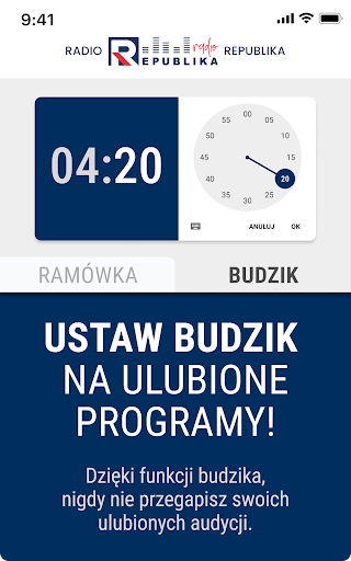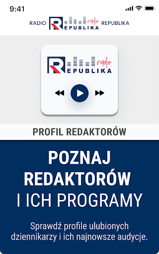 Radio Republika – Twoje radio na wyciągnięcie ręki Poznaj nowoczesną aplikację, która zapewnia pełny dostęp do treści Radia Republika. Oto, co oferuje: Strumień na żywo: Słuchaj najnowszych audycji i publicystyki w czasie rzeczywistym – zawsze, gdy masz na to ochotę. Pozdrowienia na antenę: Wyślij wiadomość bezpośrednio do redakcji, podziel się swoją opinią i zaangażuj się w dyskusję na żywo. Profile dziennikarzy: Poznaj naszych redaktorów – ich specjalizacje, harmonogram programów i audycje, takie jak Alarm. Podcasty i archiwum: Wracaj do ulubionych treści w dogodnym momencie dzięki dostępowi do podcastów i nagrań archiwalnych. Najświeższe wiadomości: Czytaj aktualne artykuły i analizy przygotowane przez redakcję TV Republika. Budzik i automatyczne odtwarzanie: Ustaw przypomnienia o ulubionych audycjach. Dzięki funkcji budzika aplikacja włączy wybrany program o ustalonej godzinie. Ramówka: Przeglądaj harmonogram audycji i ustawiaj powiadomienia, by nie przegapić swoich ulubionych programów. Dzięki prostocie obsługi i zaawansowanym funkcjom, aplikacja Radio Republika to idealne rozwiązanie dla każdego, kto chce mieć swoje ulubione treści zawsze pod ręką.