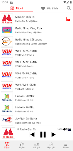 Radio Việt Nam là ứng dụng nghe đài phát thanh trực tuyến hoàn toàn MIỄN PHÍ , giúp người dùng có thể nghe đầy đủ hầu hết các kênh phát thanh của Việt Nam, mọi nơi mọi lúc, chỉ cần thiết bị của bạn kết nối internet. Và nghe lại những kênh radio đã được ghi . Ứng dụng Radio Việt Nam Online với các kênh chính có phát sóng : + VOH AM , VOH FM + Hà Nội + JoyFm + An Giang + Bắc Giang + Bạc Liêu + Bắc Kạn + Bà Rịa Vũng Tàu + Bến Tre + Bình Dương + Bình Phước + Bình Thuận + Cà Mau + Cần Thơ + Đà Nẵng + Đồng Tháp + Gia Lai + Hải Dương + Hải Phòng + Hà Nam + Hà Tĩnh + Hậu Giang + Khánh Hòa + Kiên Giang + Long An + Lâm Đồng + Ninh Bình + Phú Thọ + Quảng Nam + Quảng Ngãi + Quảng Ninh + Sóc Trăng + Sơn La + Tây Ninh + Thanh Hoá + Thừa Thiên Huế + Tiền Giang + Thái Bình + Tuyên Quang + Vĩnh Long + Yên Bái Chức năng chính của ứng dụng: + Nghe các kênh radio trực tuyến + Ghi lại kênh radio đang phát + Hẹn giờ để tắt và phát đài tự động + Hẹn giờ phát và ghi âm radio + Hỗ trợ nghe radio ẩn khi thoát khỏi ứng dụng (khi đó có thông báo hiển thị trên thanh notification và màn hình khoá ). + Hỗ trợ tự tắt nhạc khi có cuộc gọi đến và tự chạy khi kết thúc cuộc gọi + Hỗ trợ điều khiển từ thiết bị bluetooth như play , stop , next , previous + Tự thêm kênh radio cá nhân + Nghe lại các bản radio đã ghi + Chia sẻ bản radio đã ghi + Thêm kênh vào danh sách yêu thích + Ghim kênh lên đầu danh sách kênh + Thay đổi giao diện sáng tối + Tạo phím tắt kênh radio yêu thích để nghe ( hỗ trợ android 8 trở lên ) + Giao diện đơn giản, dễ sử dụng. + Tốc độ nhanh và tối ưu cho điện thoại. (*) Nguồn link radio trực tuyến từ các trang web phát thanh radio online, đài phát thanh và truyền hình trong nước ... Xin chân thành cám ơn ! Mọi góp ý hoặc thông báo lỗi, vui lòng liên hệ với chúng tôi qua email: hotro@radiovietnamonline.com . Các bạn hãy cài đặt và trải nghiệm nhé!