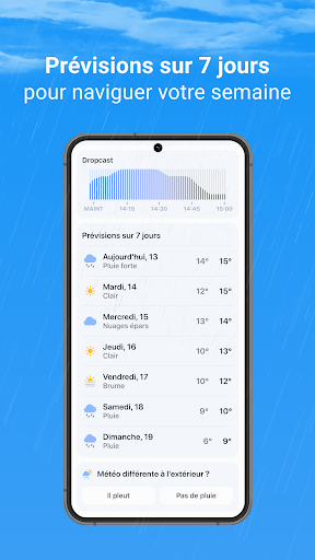 Rainbow Weather (anciennement Rainbow.ai) est une application météo hyperlocale qui vous aide à respecter vos projets pour la journée et à ne pas vous mouiller sous la pluie. Obtenez des prévisions météorologiques locales précises concernant la température, la pluie, la neige et les précipitations mixtes. Vérifiez le futur radar sur la carte et planifiez vos activités quotidiennes en conséquence. Que vous alliez courir, visiter le zoo avec votre enfant ou planifier votre voyage quotidien, Rainbow Weather vous aidera à préparer la journée et à ne pas vous laisser surprendre par la pluie. L\application vous alertera des précipitations à venir : d\une petite bruine à une averse afin que vous puissiez ajuster vos plans à temps. La puissance de Rainbow Weather à portée de main : • Prévisions de pluie à la minute près pour votre emplacement. • Changements météorologiques à venir pour votre lieu de séjour. • Informations radar futures haute définition sur une carte interactive pour planifier vos activités. • Prévisions de pluie et de neige extrêmement précises pour les 2 prochaines heures. • Alertes de pluie et notifications de neige - alarme de précipitations pour votre emplacement. • Mode sombre pour une meilleure expérience visuelle et un meilleur confort oculaire. • Prévisions de température pour la journée – planifiez vos activités en conséquence. • Température ressentie – découvrez la véritable sensation du temps extérieur, restez à l\aise et préparé chaque jour. Cette application radar locale vous fournit les données météorologiques essentielles, précises et opportunes à tout moment où vous en avez besoin - informations sur les précipitations et radar de pluie en un seul endroit. Arrêtez de modifier vos plans en raison de changements météorologiques inattendus - avec Rainbow Weather, vous êtes aux commandes ! Consultez dès maintenant le radar local et les prévisions de précipitations dans votre région ! Politique de confidentialité : https://www.rainbow.ai/privacy-policy Conditions d\utilisation : https://www.rainbow.ai/terms-of-use Vous avez des questions ? Contactez-nous par e-mail : support@rainbow.ai