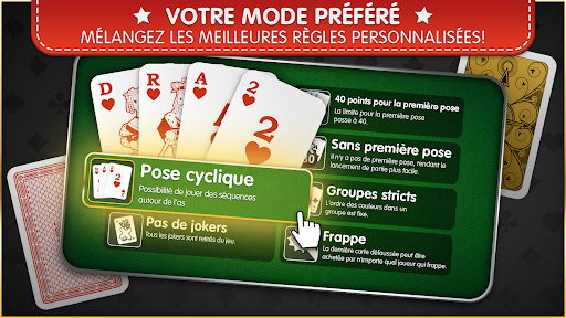 Rummy Palace – Une communauté pour le fameux jeu de cartes sur téléphone intelligent et tablette. Affrontez de vrais adversaires à ce jeu de combinaisons de cartes! Comparable au bridge ou au kalooki, le rami nécessite matière grise et sens tactique. Jouez en ligne gratuitement au sein d\une communauté de joueurs de cartes. Que vous soyez un joueur inconditionnel ou occasionnel, vous trouverez toujours un adversaire à votre niveau. Nous sommes heureux de vous inviter à nos tables de rami. JOUEZ AUX CARTES EN DIRECT - Jouez contre de vrais adversaires, quand vous voulez. - Interagissez avec une communauté de joueurs. - Discutez avec d\autres fans. FACILE À JOUER - Pas d\inscription requise. Commencez simplement à jouer. - Des parties rapides grâce à la recherche automatique de joueurs. - Un bouton pour trier vos cartes. LE RAMI, TEL QUE VOUS LE CONNAISSEZ - Utilisez les cartes du rami original ou à la lisibilité optimale. - Choisissez votre jeu de cartes : français, tournoi, allemand… - Découvrez des règles spéciales : Frappe, 40 points pour la première pose et bien d\autres. - Jouez selon vos préférences, avec vos propres règles. LE FRANC-JEU, NOTRE PRIORITÉ - Assistance permanente grâce à notre service clients. - Mélange des cartes testé de manière indépendante et fiable. - Paramètres de confidentialité ajustables. JEU DE CARTES POUR LE LOISIR - Engrangez de l\expérience et montez de niveau. - Le rami détend et entraîne votre mémoire. - Progressez pour figurer parmi les 10 meilleurs de la ligue. - Testez votre endurance avec les tournois et les tables longues durées. COMMENT JOUER AU RAMI Le rami est un jeu de cartes pour deux joueurs minimum avec un double paquet de cartes et des jokers. Débarrassez-vous de votre main avant votre adversaire. Pour cela, jouez vos cartes dans des groupes ou des rangées, et échangez-les plus tard contre des jokers. La partie se termine lorsqu\un joueur se débarrasse de sa dernière carte sur la pile de défausse. C\est alors le moment de compter les points. Et la partie suivante commence! Aimez Rummy Palace sur Facebook : https://www.facebook.com/rummypalace/ Plus d\infos sur nos jeux et nous : https://www.palace-of-cards.com/ NOTE : Vous pouvez télécharger cette app et y jouer gratuitement, de manière permanente. Cependant, il est possible d\acheter des améliorations de jeu optionnelles telles que des jetons, une adhésion premium et des cartes spéciales dans le jeu. Ce jeu nécessite une connexion Internet. En téléchargeant l\app, vous acceptez nos Conditions générales d\utilisation et notre Politique de confidentialité. CGU : https://www.rummy-palace.com/terms-conditions/ POLITIQUE DE CONFIDENTIALITÉ : https://www.rummy-palace.com/privacy-policy-apps/ SERVICE CLIENT : Si vous avez besoin d\aide, n\hésitez pas à contacter notre service client : support@rummy-palace.com Le rami est principalement destiné à un public adulte. Selon la loi allemande, le rami n\est pas un jeu de pari. Il n\y a ni argent réel ni véritables prix à gagner dans notre jeu. La pratique ou la réussite dans des jeux de casino sans véritables gains (« Jeux de casino sociaux ») n\entraîne en aucune façon un succès futur dans les jeux impliquant de l\argent réel. Rummy Palace est un produit de Spiele-Palast GmbH (Palace of Cards). Jouer en famille ou avec des amis est le passe-temps favori de nombreuses personnes! Notre mission est de procurer de la joie en offrant le Palace of Cards, un lieu numérique où se rassemble une communauté de joueurs grâce à l\implémentation de qualité de jeux de cartes en ligne. ️ ️ En vous souhaitant une bonne main ️ ️ L\équipe Rummy Palace