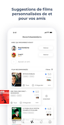 Vous arrive-t-il souvent de parcourir une liste de films, de consulter les différentes évaluations, de regarder des bandes-annonces de films et de télécharger des applis de cinema juste pour trouver quelque chose à regarder ? Tout cela pour éteindre la télé au bout de 10 minutes parce que le film choisi ne vous a pas procuré le divertissement souhaité... Raters peut vous aider à trouver le bon film streaming à suivre pour vous divertir, en utilisant une technologie avancée. C\est vraiment simple ! Vous pouvez découvrir des titres divertissants grâce aux critiques. Suivez des personnes qui ont un goût raffiné pour le ciné et consultez leurs évaluations de films et créez votre propre cinéma chez vous. De même, vous êtes un membre important de la communauté Raters! Rédigez des critiques, évaluez des films et soyez actifs sur cette application. Recevez des recommandations pertinentes de films de la part de vos amis et de personnes que vous suivez. Vous ne perdrez plus de temps à choisir un film ! Bien que vous ne puissiez pas regarder de films sur l\appli, Raters peut vous recommander plus de 250 plateformes pour regarder vos films préférés en Full HD. Technologie moderne Raters vous met en relation avec des utilisateurs ayant des goûts similaires en matière de films. Vous aimez le genre dramatique ? Alors nous allons vous montrer d\autres personnes qui s\y intéressent. Vous cherchez un film d\horreur pour pimenter votre soirée ? Raters a une liste de suggestion complète qui vous fera frissonner ! Utilisez l\application pour commencer immédiatement à recevoir de bonnes recommandations de films. Bientôt, vous serez un(e) pro. Trouvez un film à suivre Plus vous suivrez de gens, plus nous pourrons vous conseiller avec pertinence les films à suivre. La télé n\est qu\à 3 clics ! Choisissez parmi 1 à plus de 3 films par jour. Notre mission consiste à trouver des personnes dont les goûts en matière de cinéma correspondent aux vôtres et à vous recommander un film ; votre rôle consiste juste à le regarder sur un site de streaming. Demander des suggestions au groupe Il peut être difficile pour un groupe de s\accorder sur un film. Vous regardez la bande annonce et après vous n\arrivez pas à vous mettre d\accord sur un film. Après tout, « mes goûts en matière de cinéma sont meilleurs que les leurs », pas vrai ? Les sélectionneurs peuvent tenir compte des goûts de chacun et proposer des films pour deux personnes ou plus. Arrêtez de vous battre pour vos choix et préparez-vous à manger du pop-corn avec un film qui plaira à tout le monde ! Utilisez des filtres Afin d\obtenir des recommandations plus pertinentes, filtrez vos suggestions par genre, durée, date de sortie, etc. Oubliez les listes interminables de films et gagnez du temps pour les visionner en streaming. Voir les avis des amis sur Raters Considérez Raters comme votre propre cine à guichet unique. L\appli a tout ce dont vous avez besoin pour passer une bonne soirée cinéma. Obtenez des recommandations pertinentes, filtrez par genre et par durée, lisez l\objet du film et qui y joue le rôle principal, trouvez les critiques des amis sur Raters et soyez redirigé(e) vers une autre plateforme où vous pouvez regarder un film. Raters est l\outil de recherche qui vous permet de trouver des films en HD. Inutile de chercher plus loin, Raters vous a trouvé !