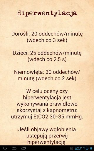 Teraz nowy interfejs! Zaktualizowano również protokoły tak, by uwzględniały leki z rozporządzenia Ministra Zdrowia. Aplikacja zawiera schematy postępowania dla zespołów podstawowych ratownictwa medycznego w Polsce. Oparte są one o wytyczne ERC 2015, wytycznych Brain Trauma Foundation (uraz czaszkowo-mózgowy), National Center for Injury Prevention and Control (kryteria Centrum Urazowego) i in. i będą stale aktualizowane. Zawiera skale typu Glasgow, Apgar, ciężkości krupu Westley\a itp. Program składa się z następujących działów: 1. Narzędzia 2. ALS 3. PALS 4. Ciąża 5. Urazy 6. Zatrucia 7. Farmakologia 8. Leki u dzieci 9. Przypadki 10. Wskazówki 11. Patenty ratownicze Wszelkie treści i media znajdujące się w aplikacji Ratownictwo Medyczne tworzone i publikowane są wyłącznie w celach informacyjnych. Aplikacja nie zastępuje profesjonalnej porady lekarskiej i nie należy jej traktować jako porada zdrowotna lub osobista. W przypadku jakichkolwiek pytań dotyczących stanu zdrowia swojego lub innej osoby należy zawsze zwrócić się o poradę do swojego lekarza lub innego wykwalifikowanego pracownika służby zdrowia. Nigdy nie lekceważ rady lekarza ani nie zwlekaj z jej zasięgnięciem z powodu czegoś, co przeczytałeś w tej aplikacji. Decydując się na zastosowanie informacji dostarczonych przez aplikację Ratownictwo Medyczne, czynisz to wyłącznie na własne ryzyko. All content and media on Ratownictwo Medyczne is created and published for information purposes only. It is not intended to be substitute for professional medical advice and should not be relied on as health or personal advice. Always seek the guidance of your doctor or other qualified health professional with any questions you may have regarding regarding your health or a medical condition. Never disregard the advice of a medical professional, or delay in seeking it because of something you have read in this app. If you choose to rely on any information provided by Ratownictwo Medyczne, you do so solely at your own risk.