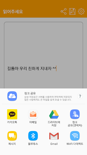 By using TTS already installed in smartphone, you can convert text to voice, play it, and save or share it to other people through SNS. It is easy to use even for adults because it is very simple to use. Please try it when there is fun of the sound of the machine or when it is hard to say. I hope you have a useful person ~ [Application - Change the voice of a man, change the speed] It may not be supported by each mobile phone model. Please try to follow slowly. *** Before Android 6.0 1) Change the male voice: Settings> Language & Keyboard> TTS output> TTS engine setting (Samsung TTS engine setting for Samsung phone)> Korean (Korea) 2) Speed Setting: Settings> Language & Keyboard> TTS Output> Speed speaking> Select desired speed *** Android 6.0+ 1) Change the male voice: Settings> General> Language & input method> Read text> Prefer TTS engine (Samsung TTS engine setting for Samsung phone)> Right setting button> Voice data setup> Korean male data setup> Samsung TTS Engine Settings> English (United States)> Female Male Select Male> 2) Speed setting: Setting> General> Language and input method> Reading text> Speed reading 3) \Please read the text\ Please use the app completely shut down and run again.