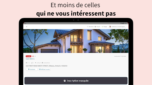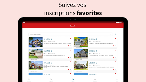 Prêt à trouver votre chez-soi? Effectuez une recherche dans la source la plus complète d’inscriptions immobilières MLS au Canada, présentant les plus récentes propriétés à vendre. Que vous achetiez une propriété pour la première fois, que vous la louiez, que vous investissiez ou que vous effectuiez une simple recherche, l’application REALTOR.ca est votre destination pour tout ce qui concerne l’immobilier. • Parcourez les dernières propriétés à vendre et à louer, y compris les maisons unifamiliales, les appartements, les copropriétés, les duplex, les maisons individuelles, les maisons en rangée, les chalets, les mini maisons, et plus encore. • De nouvelles inscriptions sont ajoutées constamment – REALTOR.ca est la plateforme immobilière la plus visitée et la plus fiable au Canada, et les Canadiens comptent toujours sur REALTOR.ca pour obtenir de l’information à jour. • Vous aimez une propriété que vous voyez sur REALTOR.ca? Ajoutez-la à la section Mes inscriptions favorites pour y accéder rapidement sur votre téléphone intelligent, votre tablette ou votre ordinateur de bureau. • Configurez une recherche enregistrée et activez les notifications pour ne jamais manquer une nouvelle inscription correspondant à vos critères. Vous n’aimez pas une propriété que vous voyez sur REALTOR.ca? Masquez-la pour que vous puissiez affiner votre recherche et ne voir que les inscriptions qui vous intéressent. • Il est facile de trouver la bonne propriété grâce à nos filtres de recherche – affinez votre recherche par prix, nombre de chambres à coucher ou de salles de bains, type de propriété, propriétés à vendre, propriétés à louer, visites libres prévues, et plus encore. • Découvrez votre quartier idéal au moyen d’information sur la démographie locale, les temps de trajet, les écoles, les parcs et les autres commodités à proximité. • Visitez des propriétés sans quitter le confort de votre foyer grâce aux visites virtuelles, aux vidéos et aux diffusions en direct utilisant des images de haute qualité. • Calculez le montant que vous pouvez vous permettre et estimez vos paiements grâce à nos calculatrices hypothécaires faciles à utiliser. • REALTOR.ca peut facilement vous mettre en contact avec tous les courtiers et agents immobiliers du Canada. Filtrez votre recherche par emplacement ou par agence, y compris tout titre ou toute spécialisation recherché, comme Certified Condo Specialists ou Master Certified Negotiation Experts.