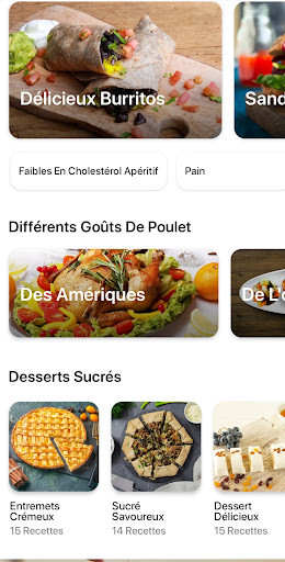 Cuisinez des recettes tasty et saines avec des instructions de recette étape par étape, des vidéos de recettes, des informations nutritionnelles et bien plus encore. Commencez à cuisiner de délicieuses recettes gratuitement. La savoureuse application Cookbook Recipes propose des recettes du monde entier. Vous pouvez télécharger l\application Cookbook pour créer une collection hors ligne de recettes saines et délicieuses. Nous avons développé l\application de recette de livre de cuisine avec les fonctions suivantes: 1. Recueillir des recettes - choisissez vos recettes préférées parmi les collections de recettes de livres de cuisine. 2. Planificateur de recettes quotidiennes pour les recettes françaises et autres cuisines savoureuses. 3. 1 million de recettes gratuites 4. Créez une liste d\épicerie pour une épicerie facile. 5. Envoyez la délicieuse liste de courses de recettes françaises à votre partenaire. 6. Envoyez des recettes simples à vos amis. 7. Obtenez de délicieuses recettes hors ligne sans Internet. (Pas d\Internet requis) 8. Recherche de délicieuses recettes à base d\ingrédients. 9. Recherche de recette simple pour les ingrédients, les occasions, les habitudes alimentaires, les difficultés de cuisson, etc. 10. Obtenez des recettes populaires et savoureuses du monde entier. Catégories de recettes de livres de recettes: - > Recettes de petit déjeuner > Recettes pour le déjeuner > Recettes de dîner > Recettes de collations > Recettes d\accompagnement > Recettes de desserts > Recettes d\épices > Recettes de smoothies Téléchargez cette application de tasty recette française aujourd\hui. Profitez des meilleures recettes tasty de Corée.