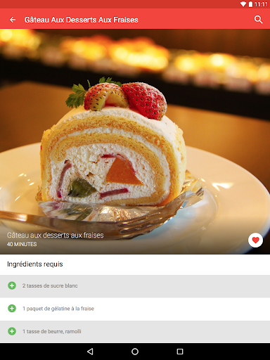 L\application Cake Recipes vous propose de nombreuses recettes saines et faciles. Il s\agit notamment de recettes de gâteaux au fudge, recettes de gâteaux d\anniversaire, recettes de gâteaux aux carottes, recettes de gâteaux aux fruits, recettes de cupcakes, recettes de gâteaux au fudge, recettes de gâteaux d\anniversaire et recettes de gâteaux aux carottes. Recettes festives De délicieuses idées de cuisson avec des recettes de gâteaux du Nouvel An 2020, des gâteaux de Saint Valentin et des gâteaux pour Super Bowl sont disponibles dans l\application gratuite de recettes de gâteaux. Recettes de cupcakes populaires du mois Les recettes comme l\éponge génoise, les cupcakes au gingembre et à la citrouille, le gâteau au chocolat, le gâteau au chocolat et la choucroute, les cupcakes au cendol, le gâteau au chocolat sans oeufs, le gâteau de la forêt noire et le gâteau au fudge au moka européen sont populaires en janvier et février. Instructions simples de recette de gâteau sain avec photo Chaque recette de brownie a des instructions faciles étape par étape avec une photo. Obtenez de nombreuses recettes savoureuses gratuitement dans notre application Cake Recipes. Contrairement à d\autres applications de recettes, Cake Recipes peut être utilisé hors ligne. Cela rend notre application de recettes gratuite pour Android parfaitement adaptée à votre cuisine. Recueillir des recettes de cupcakes préférées Ajoutez vos recettes de gâteaux sains préférées à la section des favoris de l\application. Vous pouvez utiliser les recettes de brownies enregistrées hors ligne. Vous pouvez également créer des collections de recettes de cupcakes sur la base de la cuisine, végétarienne, non végétarienne, des idées de dîner, du style de cuisine, etc. Recherche de recettes de gâteaux sains Trouvez des recettes par simple recherche avec le nom d\une recette ou par ingrédients utilisés. Vous pouvez rechercher des recettes de brownies avec les ingrédients que vous avez. Nous avons également des recettes de Thanksgiving, des recettes de Noël, des recettes d\Halloween et d\autres catégories de recettes pour des occasions spéciales. Convertir des ingrédients en recette Notre application de recettes alimentaires vous permet de cuisiner avec les ingrédients que vous avez. La fonction de cuisson par ingrédients vous permet de rechercher et de découvrir des recettes de cupcakes que vous pouvez cuisiner avec des ingrédients dans le réfrigérateur de votre cuisine. Goûts, allergies et régimes Nous avons souvent des recettes de gâteaux sains pour les personnes suivant des régimes végétaliens, céto, sans gluten et végétariens. Si vous souffrez d\allergies alimentaires, nous avons des recettes sans œufs, des recettes sans produits laitiers, des recettes sans blé, des recettes sans arachides et sans lactose. Des informations nutritionnelles comme les glucides, les calories, le cholestérol et les graisses sont disponibles dans Cake Recipes app. Nous proposons de nombreuses recettes de cupcakes: Cuisinez de délicieuses recettes de gâteaux sains à la maison en utilisant du sucre en poudre, du sucre, du fromage à la crème et de la margarine. Des recettes de brownies classiques comme le shortcake aux fraises, les cupcakes en velours rouge, le gâteau aux pommes, le gâteau au citron avec glaçage à la guimauve et le gâteau éponge sont disponibles dans l\application. Nos recettes de cupcakes préférées incluent le gâteau au chocolat au marbre, les gâteaux au chocolat à la guimauve, gâteau au fromage aux framboises sans cuisson et le gâteau au fromage. Notre application de recettes de gâteaux sains vous offre de nombreuses recettes cuisine gratuites pour gâteaux aux fruits, cupcakes, gâteaux au fudge, etc. Prise en charge de Wear OS Accédez à vos recettes préférées, recherchez de nouvelles recettes et effectuez même des achats hors ligne à l\aide de votre montre connectée compatible Wear OS. Commencez à cuisiner avec notre application de recettes gratuite dès aujourd\hui.