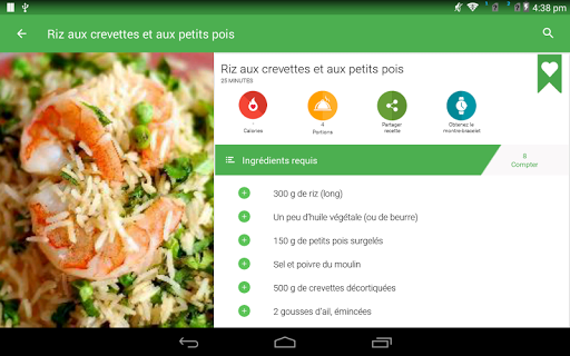 Recettes de riz est une application gratuite qui vous apporte la plus grande collection de variétés de plats de riz. Vous devez avoir entendu parler du riz brun, du riz blanc et du riz rouge. Le riz brun est un aliment hautement nutritif. C\est un grain entier qui est relativement faible en calories, riche en fibres, sans gluten et peut être incorporé dans une variété de plats. C’est un pilier dans des pays comme le Japon et l’Inde depuis des milliers d’années. Si vous êtes un débutant ou que vous ne savez pas quoi cuisiner, l\application de recette de riz fournit des vidéos de cuisine pour vous aider. Il vous fera découvrir une large collection de repas de 15 minutes et de nombreux plats simples que vous pourrez cuisiner. La plupart des pays préfèrent les recettes de riz pour le dîner et le déjeuner. Le riz frit est une recette populaire dans les restaurants chinois et asiatiques. Le poulet, les alevins de poisson et le pudding pendant nos repas sont l\une des meilleures combinaisons. L\EXPÉRIENCE APP Notre application est simple à naviguer et propose également plusieurs didacticiels sur la façon d\utiliser l\application. Comme la recette est un ensemble d\instructions pour la cuisson, notre application fournit également des informations nutritionnelles, des portions, le temps total de préparation. Une autre caractéristique clé de notre application est qu\elle prend en charge plusieurs langues. Actuellement, nous proposons environ 13 langues principales. Support de thème Rendez votre expérience culinaire plus confortable la nuit en activant le mode sombre. Liste d\achats intelligente Une liste de courses organisée permet à l\utilisateur de créer une liste d\ingrédients. Les utilisateurs peuvent également ajouter des éléments directement à partir de recettes. Il a également un accès hors ligne. Rechercher 1M + Recettes Notre application fournit également une fonction de recherche globale où vous pouvez découvrir de nouvelles recettes. Collectionnez vos favoris Utilisez notre bouton de signet pour enregistrer et organiser les recettes dans votre liste de recettes préférées. Ils ont également un accès hors ligne. Profil personnel Avez-vous une merveilleuse recette que vous aimeriez partager? Pour soumettre votre recette savoureuse, il vous suffit de créer un compte. En plus de cela, vous pouvez également télécharger vos photos de plats savoureux.