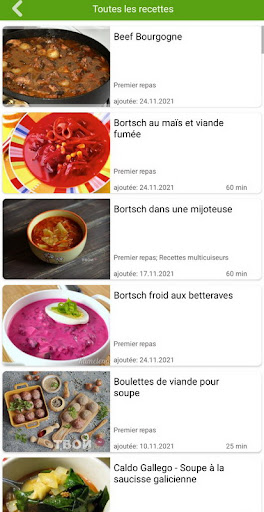 Cuisiner avec amour! Cette application vous attend: - 450 de délicieuses recettes avec des photos Teneur: * Cuisine délicieuse( 328 ) * Cuisine allemande( 1 ) * Cuisine américaine( 11 ) * Cuisine anglaise( 4 ) * Cuisine asiatique( 1 ) * Cuisine biélorusse( 3 ) * Cuisine chinoise( 1 ) * Cuisine de louisiane( 1 ) * Cuisine espagnole( 6 ) * Cuisine française( 18 ) * Cuisine géorgienne( 1 ) * Cuisine grecque( 1 ) * Cuisine indienne( 4 ) * Cuisine individuelle( 17 ) * Cuisine orientale( 3 ) * Cuisine ouzbek( 1 ) * Cuisine polonaise( 1 ) * Cuisine portugaise( 1 ) * Cuisine russe( 2 ) * Cuisine ukrainienne( 1 ) * Cuisine végétarienne( 21 ) * La cuisine thai( 4 ) * Nourriture asiatique( 4 ) * Nourriture italienne( 17 ) * Nourriture mexicaine( 13 ) Nous sommes prêts à écouter toutes vos idées et souhaits concernant le développement ultérieur de l\application. Vous pouvez nous contacter à andrei.nazarco@gmail.com et nous répondrons certainement à toutes vos questions et souhaits. Bon appétit!
