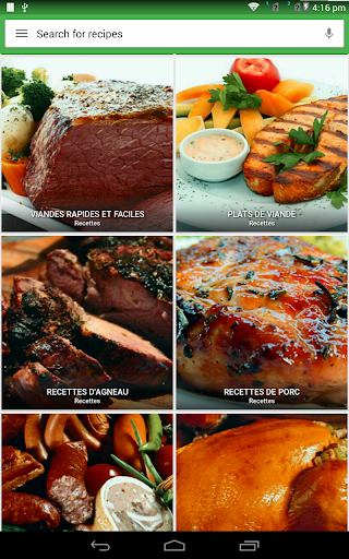 L\application Meat Recipes vous propose une collection large et organisée de plats de viande du monde entier. C\est une chair animale qui peut être consommée comme nourriture. La viande est principalement composée d\eau, de protéines et de matières grasses. Il est normalement consommé après avoir été cuit et assaisonné ou transformé de diverses manières. Le poulet sur le grill est très délicieux et assure également une alimentation saine. Il existe différentes catégories de recettes de viande saines. La consommation de viande varie dans le monde, en fonction des préférences culturelles ou éthiques, ainsi que des conditions économiques. Il peut être largement classé comme \rouge\ ou \blanc\ selon la concentration de myoglobine dans la fibre musculaire. La viande est considérée comme un aliment protéiné complet contenant tous les acides aminés nécessaires au corps humain. La graisse de viande varie considérablement selon l\espèce, la qualité et la coupe. C\est une précieuse source d\énergie. La viande fraîche peut être cuite pour une consommation immédiate ou transformée. Il peut être traité pour une conservation à plus long terme et une consommation ultérieure, éventuellement après une préparation supplémentaire. Il est préparé de nombreuses façons sous forme de steaks, de ragoûts, de fondue ou de viande séchée comme le bœuf. La viande est généralement consommée cuite, mais de nombreuses recettes nécessitent du bœuf cru, du veau ou du poisson. Le steak tartare est un plat de viande à base de boeuf cru finement haché ou haché. La viande est une base typique pour faire des sandwichs. Les variétés populaires de viande à sandwich comprennent le bœuf, comme le steak, le rôti de bœuf, le bœuf salé et le pastrami. L\EXPÉRIENCE APP Notre application est simple à naviguer et propose également plusieurs didacticiels sur la façon d\utiliser l\application. Comme la recette est un ensemble d\instructions pour la cuisson, notre application fournit également des informations nutritionnelles, des portions, le temps total de préparation. Une autre caractéristique clé de notre application est qu\elle prend en charge plusieurs langues. Actuellement, nous proposons environ 13 langues principales. Support de thème Rendez votre expérience culinaire plus confortable la nuit en activant le mode sombre. Liste d\achats intelligente Une liste de courses organisée permet à l\utilisateur de créer une liste d\ingrédients. Les utilisateurs peuvent également ajouter des éléments directement à partir de recettes. Il a également un accès hors ligne. Rechercher 1M + Recettes Notre application fournit également une fonction de recherche globale où vous pouvez découvrir de nouvelles recettes. Collectionnez vos favoris Utilisez notre bouton de signet pour enregistrer et organiser les recettes dans votre liste de recettes préférées. Ils ont également un accès hors ligne. Profil personnel Avez-vous une merveilleuse recette que vous aimeriez partager? Pour soumettre votre recette savoureuse, il vous suffit de créer un compte. En plus de cela, vous pouvez également télécharger vos photos de plats savoureux.